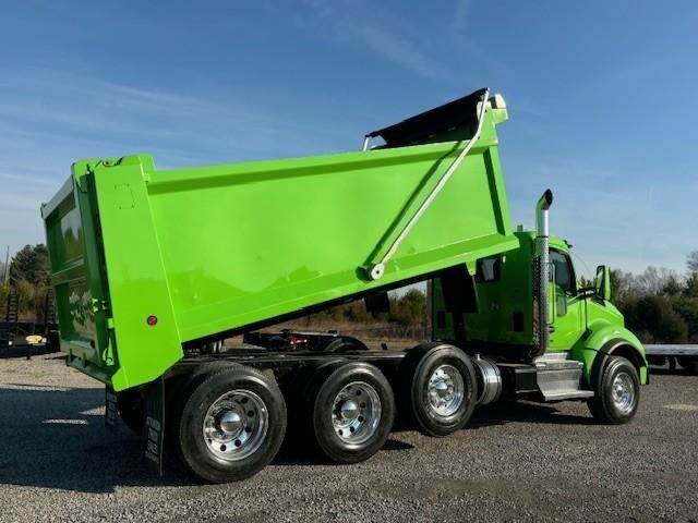 Tri Axle, X15 Cummins 565 HP, Allison Automatic 6 Speed, 4.30 Ratio, 18,740 Front Axle, 46,000 Rear Axle, 227" Wheelbase, 21' 1" Bridge, Chalmers, Double Frame, 3 Stage Engine Brake, Air Brake, Full Locking Rears, 17.6' HARDOX STEEL Heritage Dump Body, 60" Sides, Air Gate, Electric Tarp, 20,000 Lb. Steerable Lift Axle, Aluminum Front Wheels, Aluminum Rear Wheels, Engine Heater Plug, Dual Stacks, Aluminum Fuel Tank, Daylite Doors, Air Ride Cab, Dual High Back Seats, High Level Interior, Chrome Gauge Package, Heated Mirrors, Cruise Control, Tilt & Telescopic Steering Wheel, AM/FM CD, Power Windows, P/L, P/S, AC.