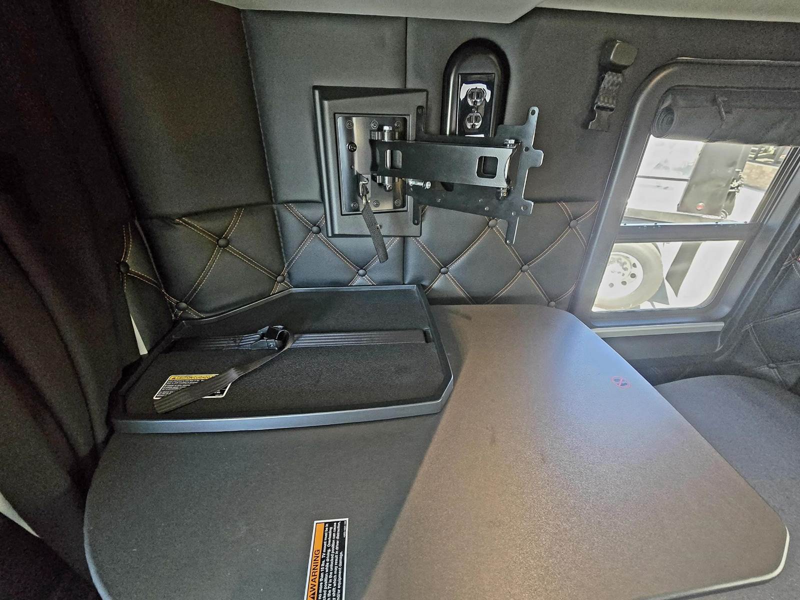 Additional Features: Diamond Interior, Dual Air Ride Two-Tone Leather Seats, Digital Dash, In-Dash Navigation, Extra Gauges, Refrigerator, Work Desk, Swivel Passenger Seat, 3.42 Ratio, Full Lockers, All Disc Brakes, AG 460 Suspension, Polished Aluminum Wheels, Deep Rubber, Air Slide 5th Wheel, Chicken Lights, Cabinets for Storage, Chrome Bumper, Dual Stacks, Chrome Visor & more!