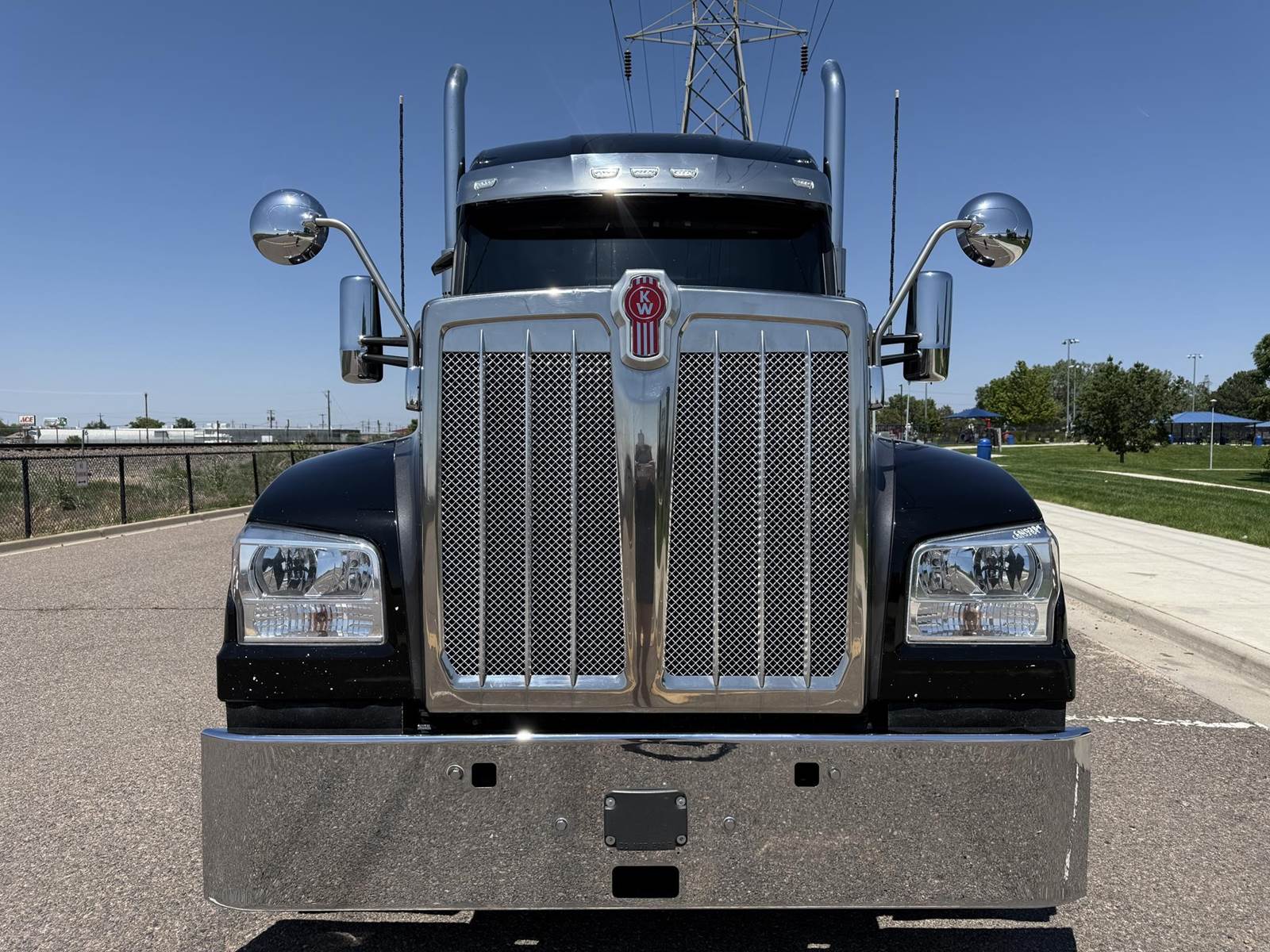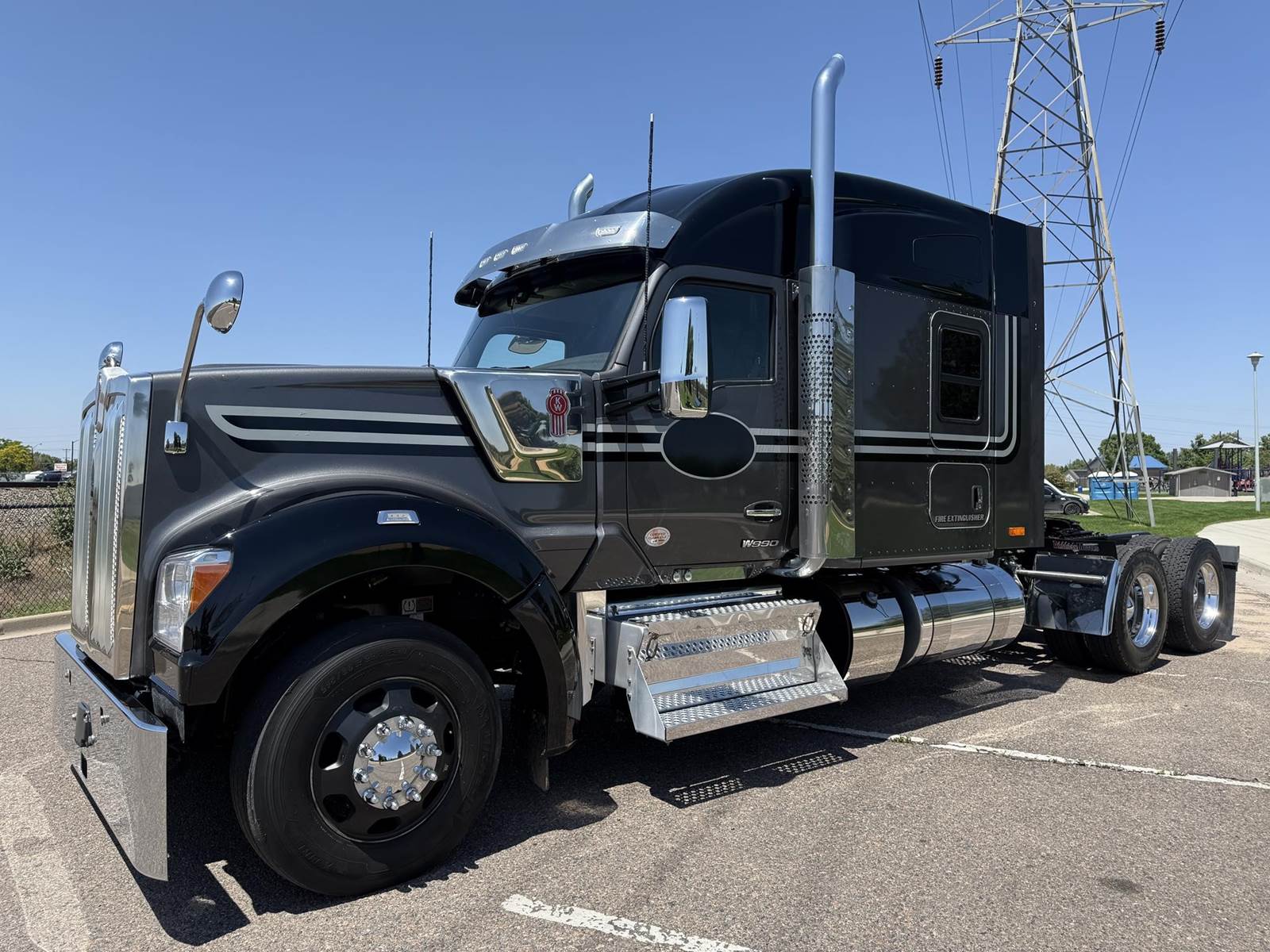 2023 KENWORTH W990 – Check out this long wheelbase W990 Sleeper, APU, DUAL Exhaust, Chrome Bumper, Hood Mirrors, and more!