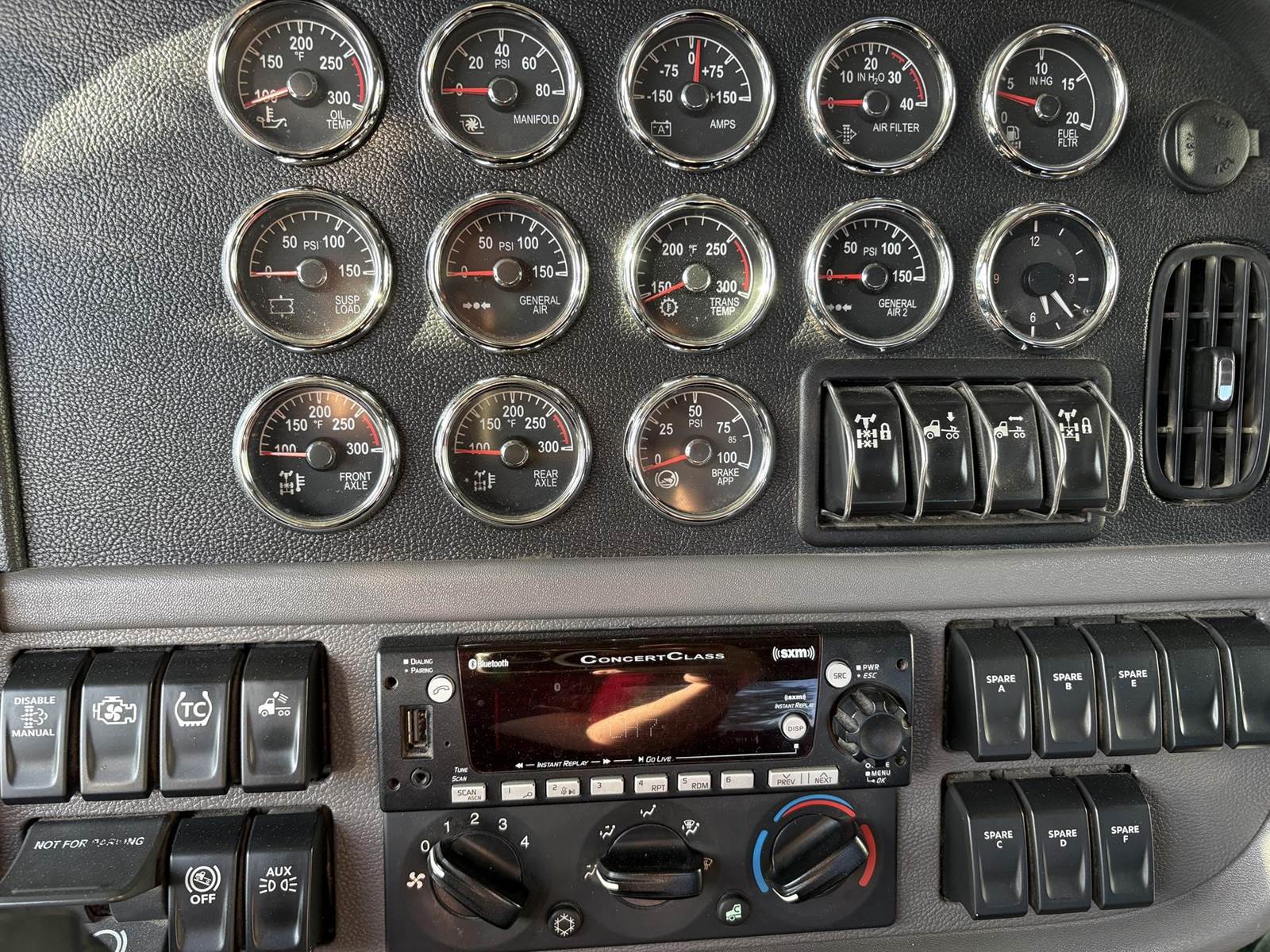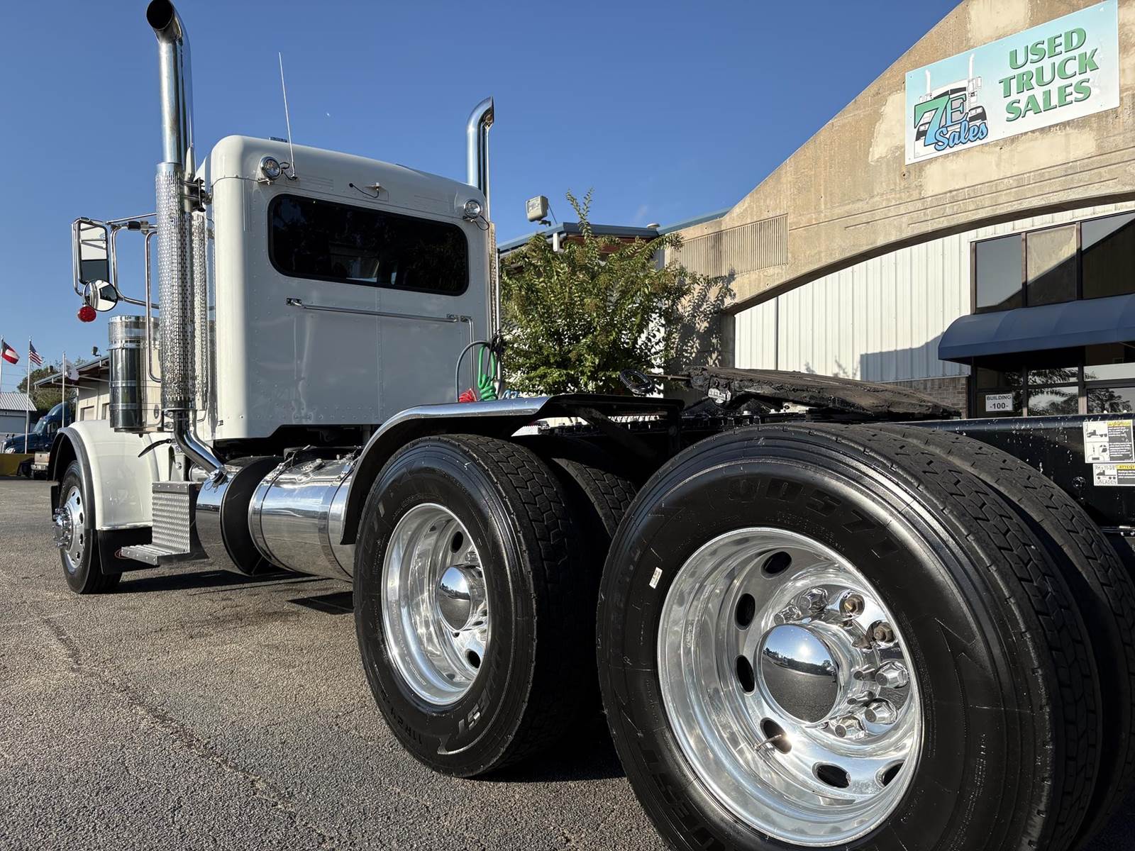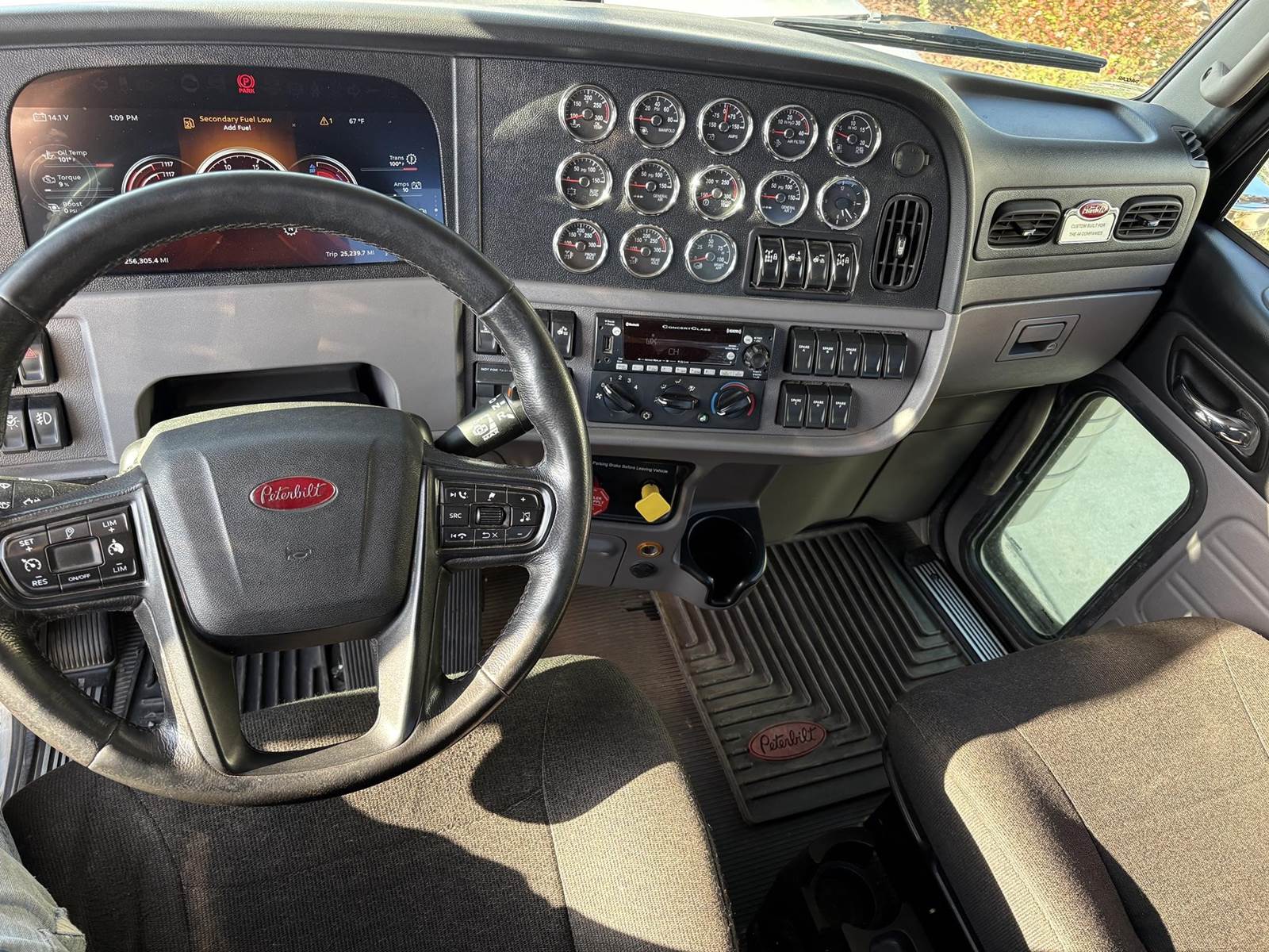 Paccar MX-13, 510HP with engine brake Endurant 12-speed automatic with overdrive Digital dash – modern, driver-focused interior Dual exhaust & dual breathers Air ride suspension – tandem 40k rears / 12k front Disc brakes, sliding 5th wheel 11R24.5 tires on aluminum wheels Wheelbase: 235” GVWR: Class 8, 40,000 lbs