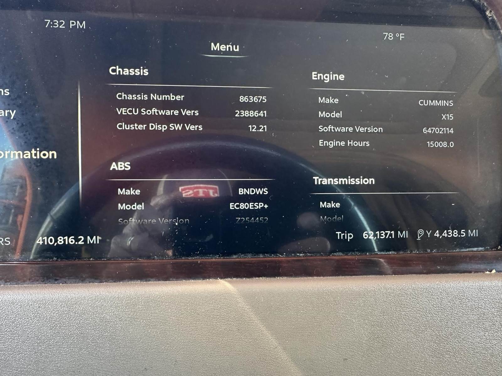 500 hp X15 w/18 Speed Manual Transmission, 80" Ultra Loft w/2 bunks, Refrigerator, Chrome Bumper, Bunk Heater, Tilt and Telescoping,
