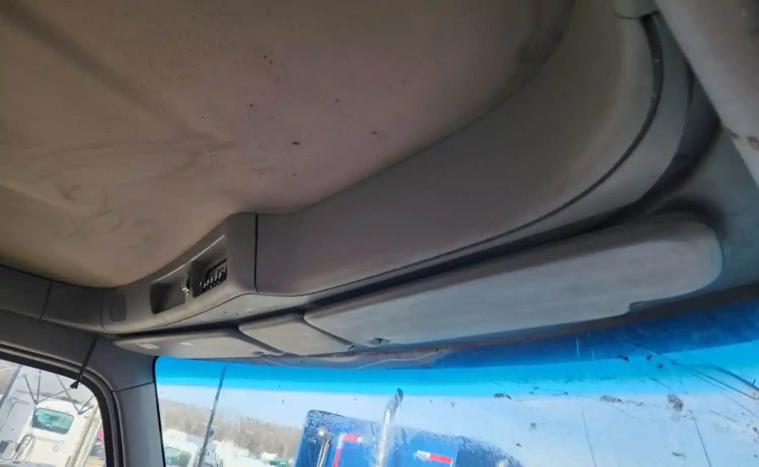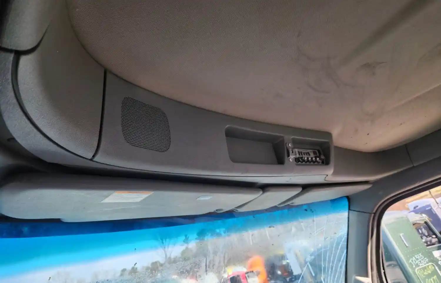 (Used) 2023 Peterbilt 567, OVERHEAD STORAGE CONSOLE- Color: Grey, Material: Plastic, Less Sun Visors Sold Separately, Reference images for condition, For more information about this item, give us a call. We ship Worldwide! (CRG HEAVY TRUCK PARTS) 929 W PULASKI HWY ELKTON, MD 21921, Material: Plastic