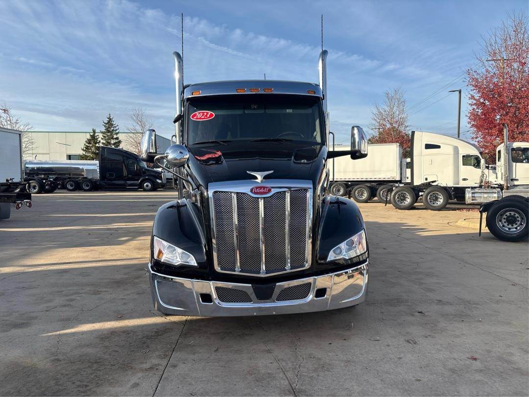 SHARP! 2023 Peterbilt 579 Single Bunk Sleeper with a 510HP Paccar MX13 Engine and a 13 Speed MANUAL Transmission! This unit has an Air Slide 5th Wheel; Heated Mirrors; Dual Exhaust; Stainless Steel Bumper and Visor; Disc Brakes; Adaptive Cruise Control; Lane Departure; Refrigerator; TV and Microwave Prep and much more! This truck also has remaining factory warranty of 48 Months or 400k miles on the Aftertreatment and 48 Months or 400k miles on the engine. Contact your local sales rep today!