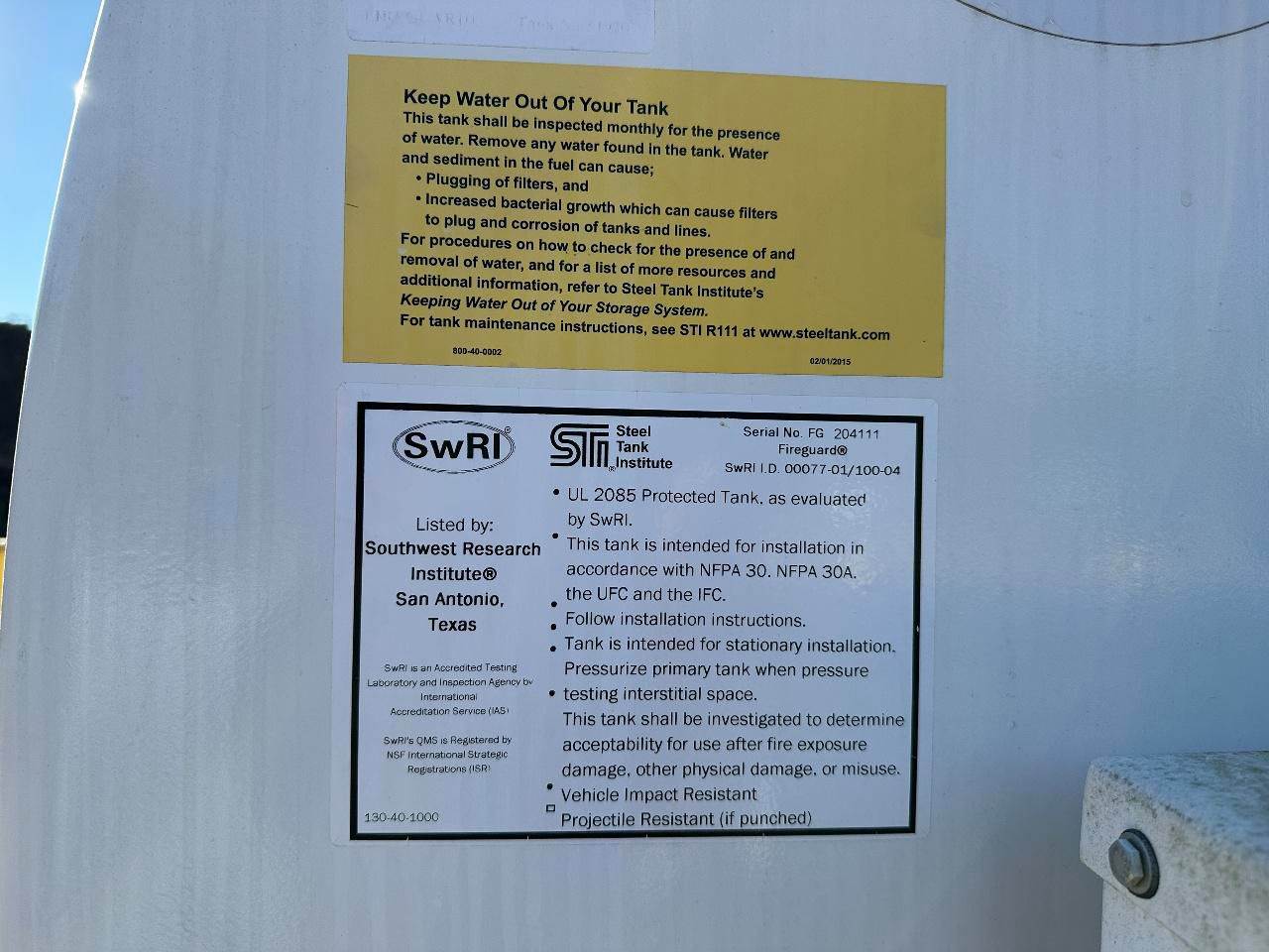 2023 Steel Tank Institute 10,000 Gallon Diesel Off Road Fuel Tank, Smart Fill System. Unit sold as-is where-is in Oakwood GA. Inspection completed by a non-bias, qualified, 3rd party. Additional findings, videos, and photos can be found on the circle inspection icon below. Financing and transportation available.