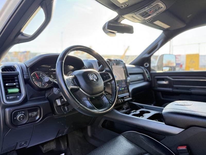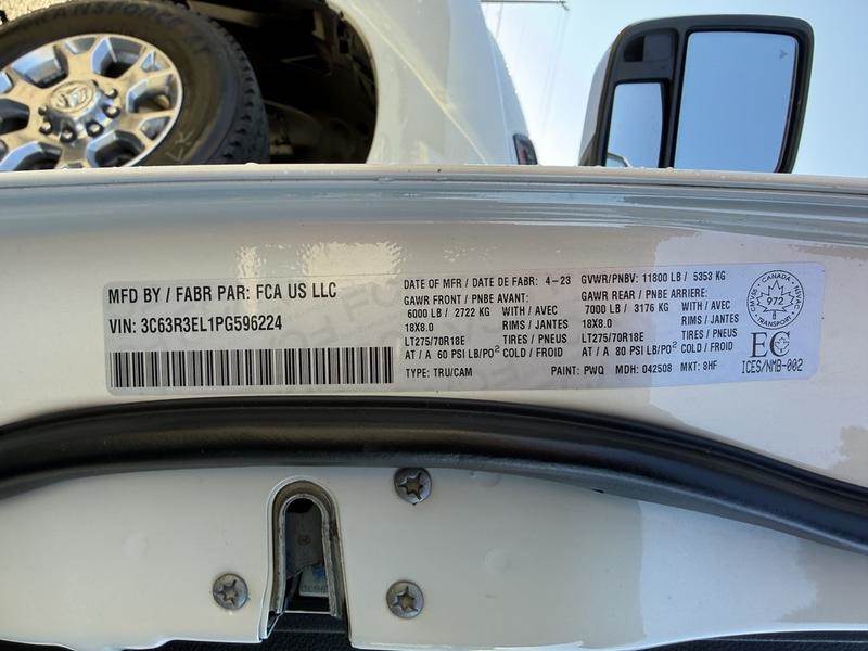 This 2023 Ram 3500 Laramie Sport 4x4 crew cab is powered by a 6.7L Cummins inline-6 turbo diesel paired with a 6-speed automatic transmission and features an electronic shift-on-the-fly transfer case with anti-spin rear differential. It is equipped with a 6.3-foot box, Class V hitch with 4- and 7-pin wiring, trailer tow pages, trailer light check, and power telescoping and folding mirrors with forward and reverse utility lighting. The interior offers leather seating with heated and ventilated front seats, heated steering wheel, dual-zone automatic climate control, power adjustable pedals with memory, and a 12-inch Uconnect 5 NAV system with Apple CarPlay and Android Auto, along with a 17-speaker Harman/Kardon premium sound system. Additional features include Park-Sense front and rear park assist, ParkView backup camera, blind-spot and cross-path detection, remote start, push-button start, rain-sensing wipers, LED lighting, sport performance hood, and a power sliding rear window. Finished in white with a black leather interior, this truck offers a well-equipped and capable setup suited for towing, work, or everyday driving. This item is currently OFFSITE. You must register an appointment with our office to schedule an offsite viewing. Appointments must be made a minimum of one business day in advance (and as defined by the days that Repo.com is open for business) before your appointment can be scheduled and confirmed. We may, at our own discretion, instead opt to transport smaller items to Repo.com's main yard for viewing purposes. $79,990.00 plus $375 processing fee, $80,365.00 total payment obligation before taxes. Listing report, warranty, contract commitment cancellation fee, financing available on approved credit (some limitations and exceptions may apply). All above specifications and information is considered to be accurate but is not guaranteed and no opinion or advice is given as to whether this item should be purchased. We do not allow test drives due to theft, fraud, acts of vandalism and undetectable impaired driving. Instead we provide the following benefits: Complimentary Warranty (with options to extend), Limited Money Back Satisfaction Guarantee on Fully Completed Contracts, Contract Commitment Cancellation, and an Open-Ended Sell-Back Option. Ask seller for details or call to confirm listing availability.