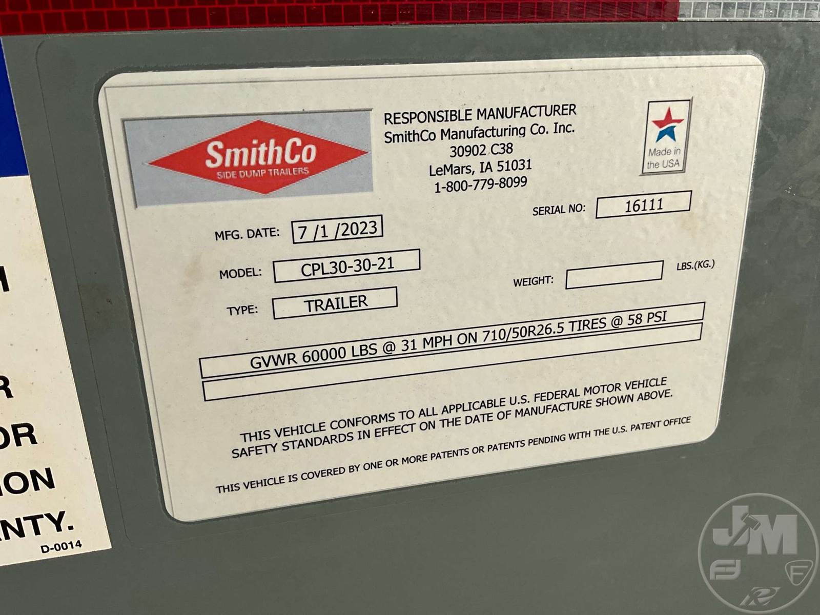 2023 SmithCo CP30 Trailer
