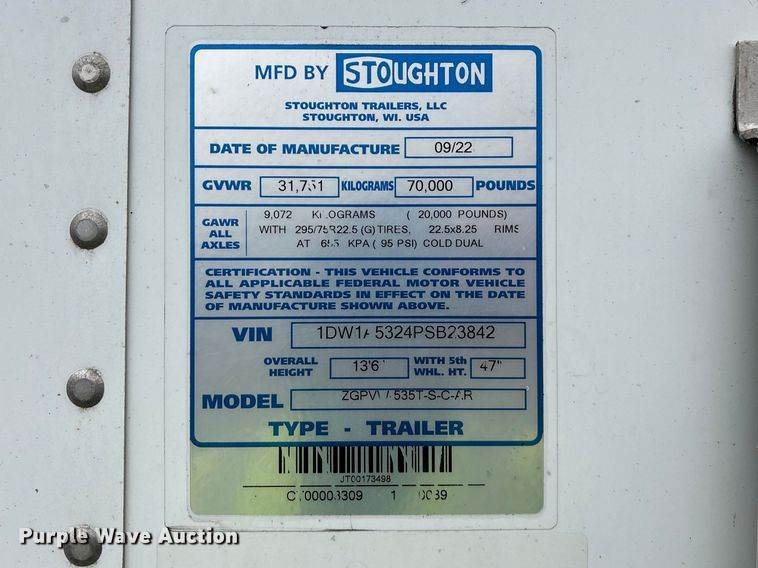 2023 Stoughton ZGPVW-535T-S-C-AR dry van trailer