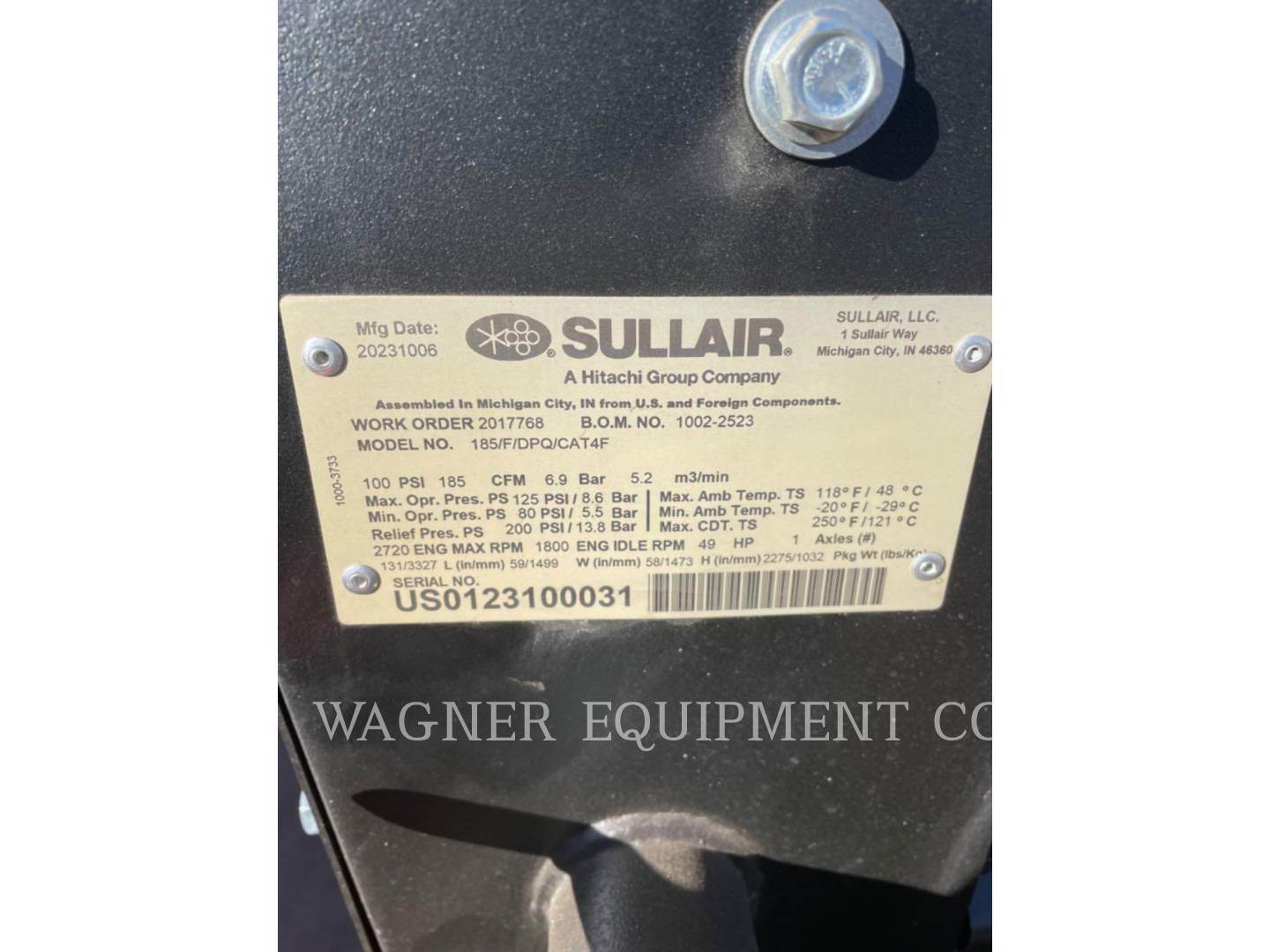 2023 Sullair 185DPQ Air Compressor