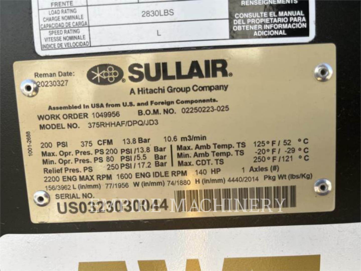 2023 Sullair DPQ375HHAF Air Compressor