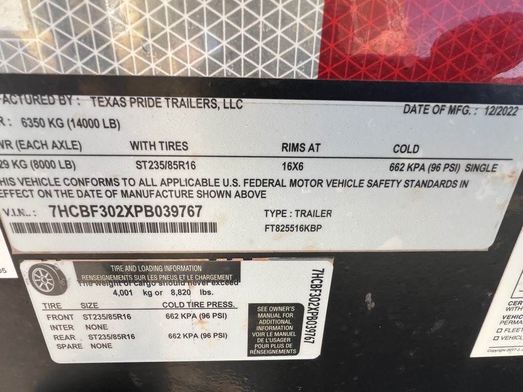 Location Pocatello ID ***End-User Consignment*** VIN: 7HCBF302XPB039767 8'6" Width X 30' length, ball hitch, 14,000lb GVWR, ST235/85R16 tires. *This item is located in Pocatello, Idaho and can be viewed by appointment only. To schedule a preview or to ask questions about this item call 888-230-8840*