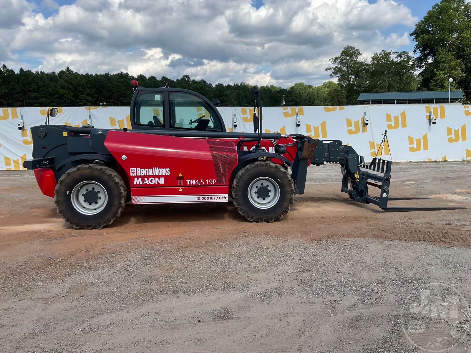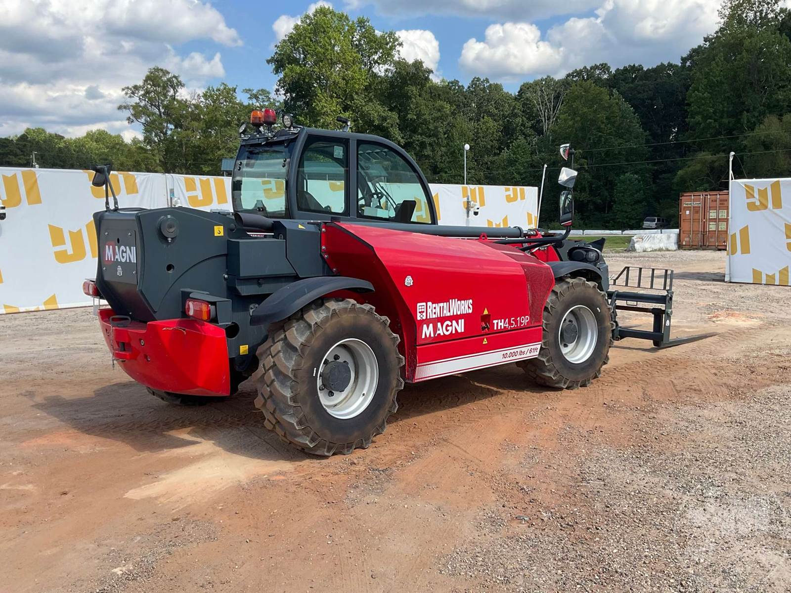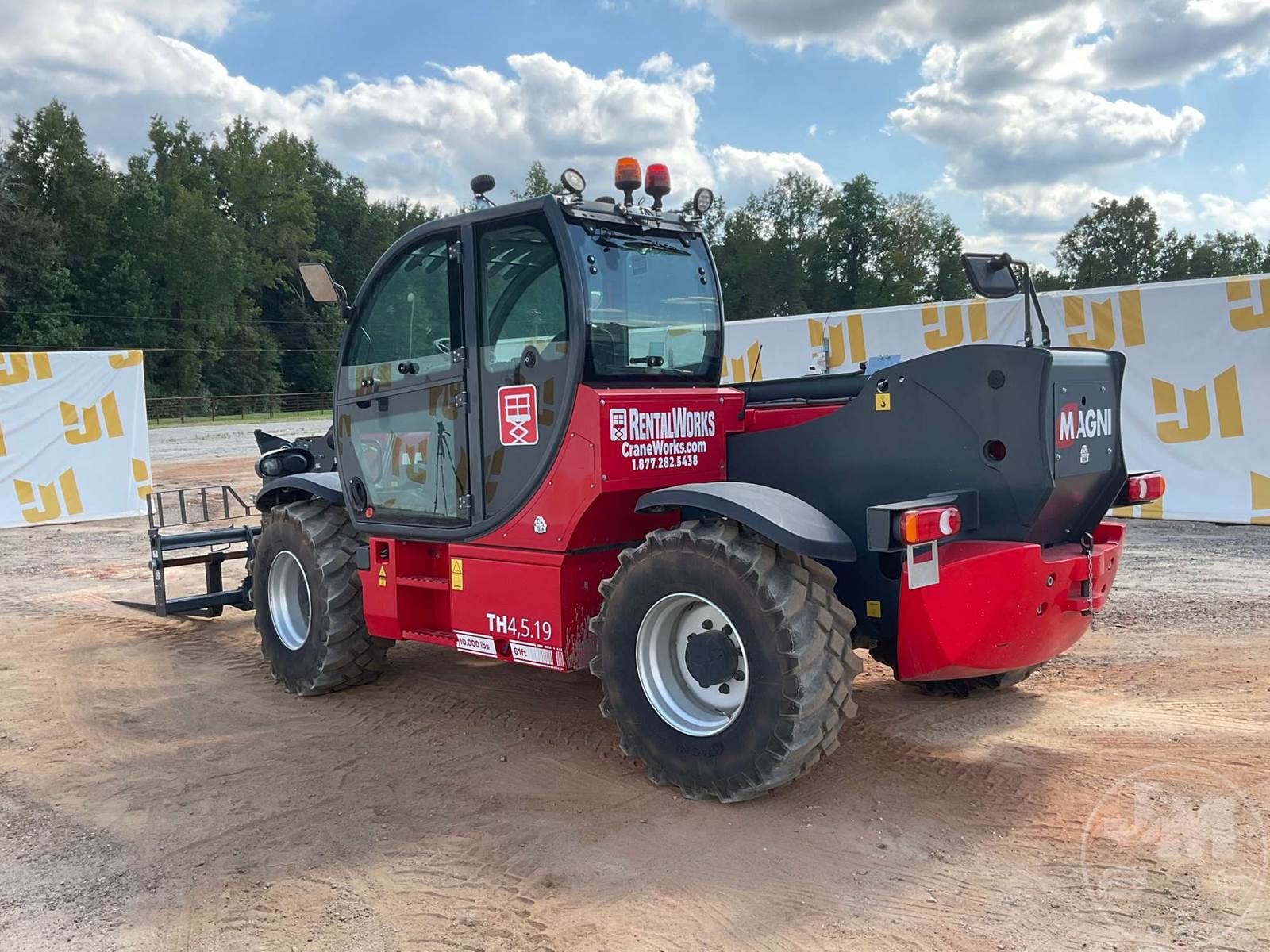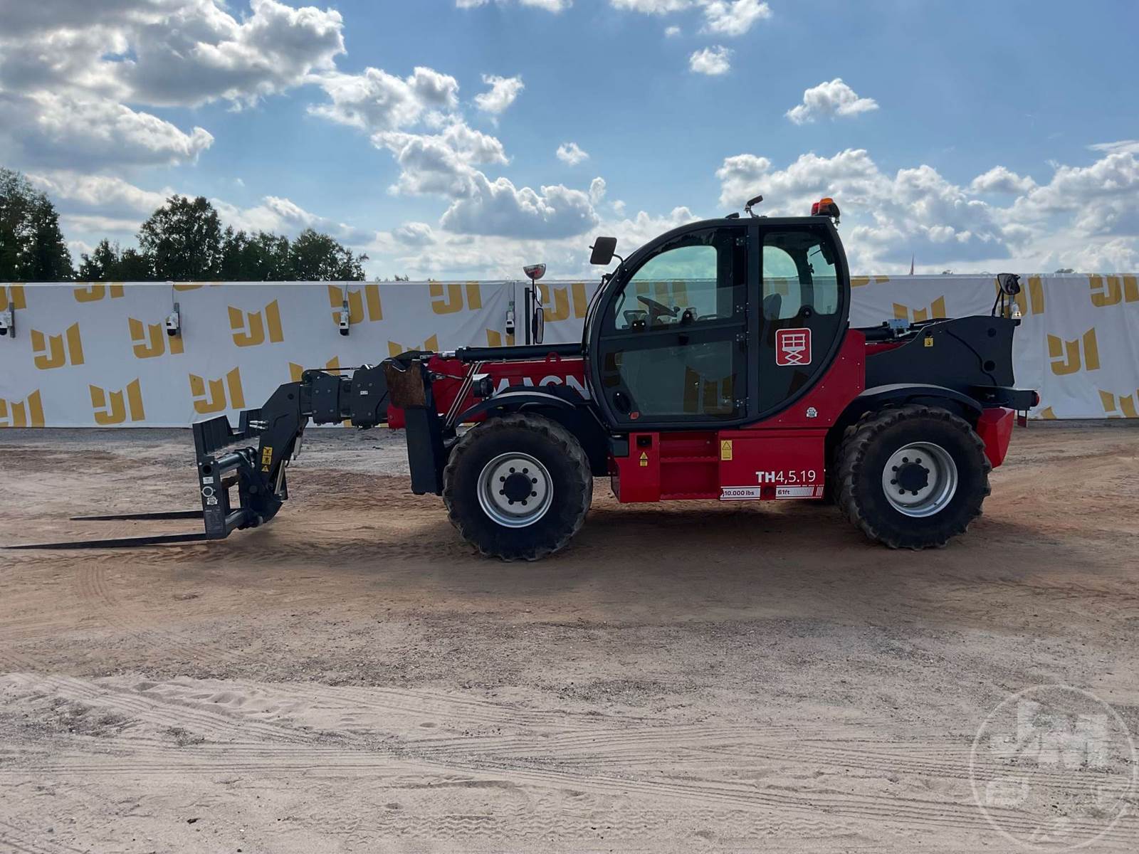 10000 LB TELESCOPIC FORKLIFT, Â 2023 MAGNI TH4.5.19 TELEHANDLER WITH A 10,000LBS CAPACITY EQUIPPED WITH A CAB, AC, RADIO, DEUTZ TCD 75.3 HP 4 CYL DIESEL ENGINE, HYDROSTATIC TRANSMISSION 61' LIFT HEIGHT, 4X4, ALL WHEEL STEER, OUTRIGGERS, FRAME LEVELING, AUX HYD, QC FORKS, 72" FORKS, R.F.I.D. ATTACHMENT RECOGNITION SYSTEM,HOUR METER READS: 312