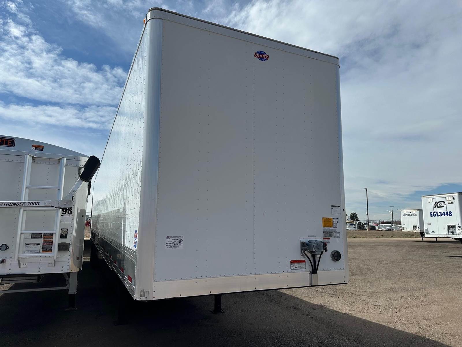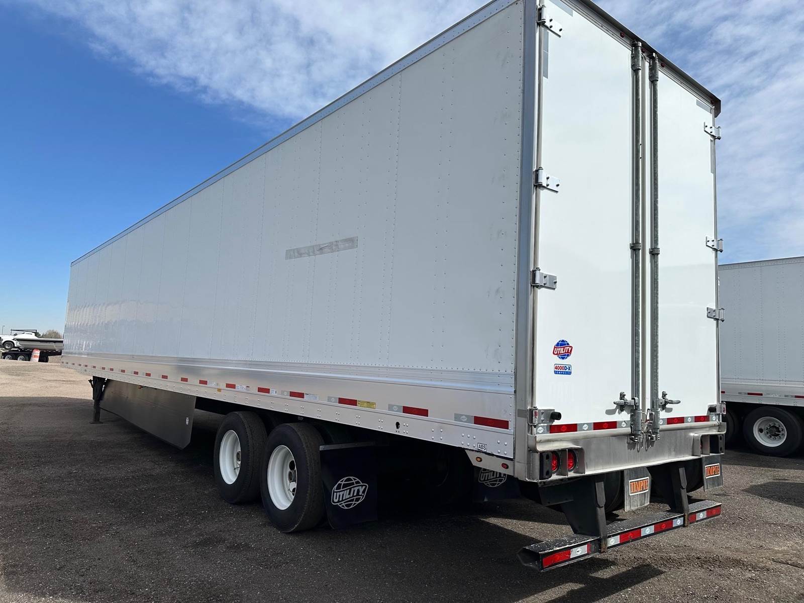 2023 Utility 4000DX TBR Dry Van, 53' x 102", Aluminum Front Corners, Smooth Panels, Tall Bottom Rail, Side Skirts, Tire Carrier, Hendrickson Air Ride w Slider Air Pins, Tire Maxx-Pro PSI-Inflate and Deflate, Anti Dock Walk, Steel Wheels, 22.5LP Tires, ICC Bumper, Rear Swing Doors, 2 Lock Rods, HD Threshold Plate, Wood Floor, Tall Bottom Rail, Wearband, Composite Wall Panels, Logistic Post Never More Than 24" Off Centers, Aluminum Roof, LED Lights, Dock Bumpers,