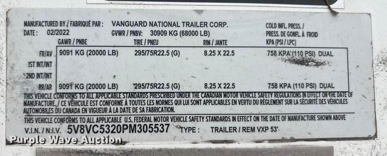 2023 Vanguard VXP dry van trailer