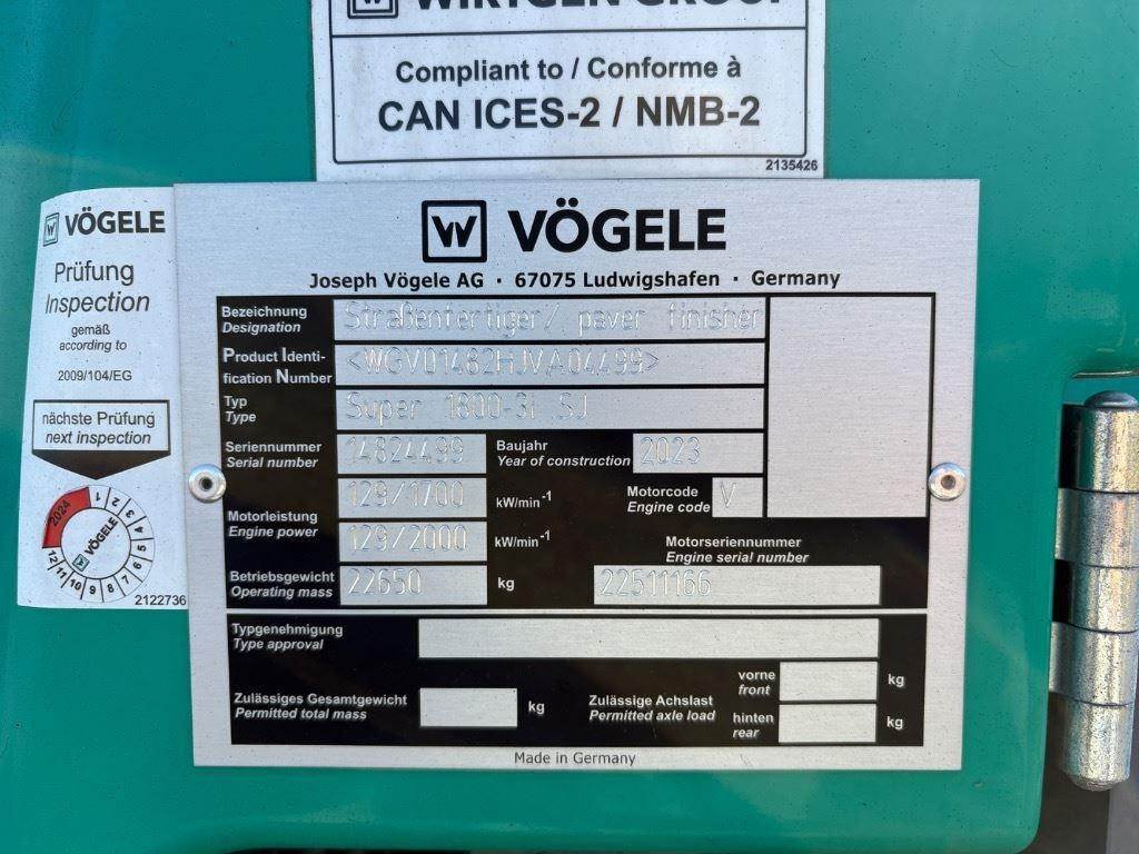 2023 Vogele SUPER 1800-3i Asphalt Paver