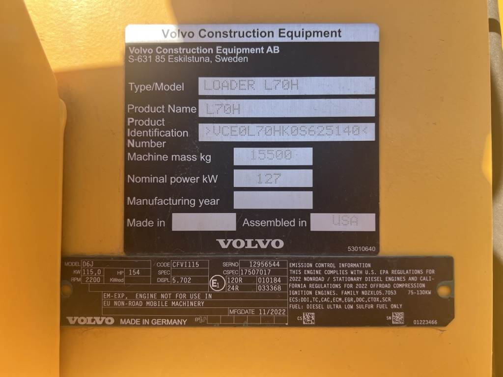 2023 Volvo L70H Wheel Loader