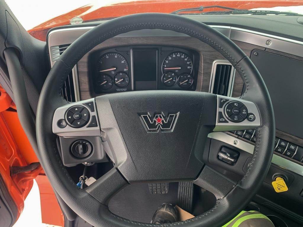 Exterior Color: Omaha Orange, Engine: DD15, Engine HP: 505, Transmission: Detroit DT12-1650-OV, Front Suspension: Taperleaf, Front Axle: Detroit DA-F-20.0-5, Rear Axle: Meritor RT-46-160 R-Series, Ratio 3.07, Wheelbase: 218, 5th Wheel: Holland FW35 ILS 48" Air Slide, Driver Side Fuel Tank 100 Gallon, Interior Color: Timber Brown Vinyl, Driver Seat: Elite 2.0 High Back