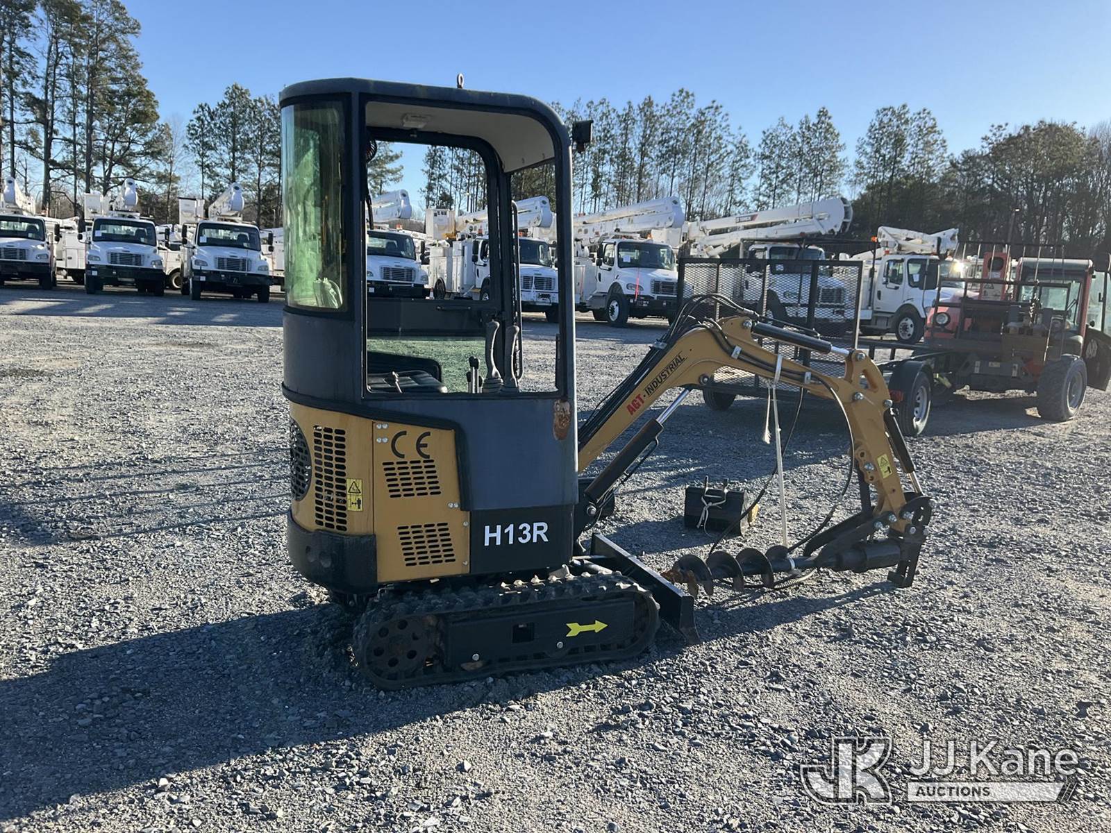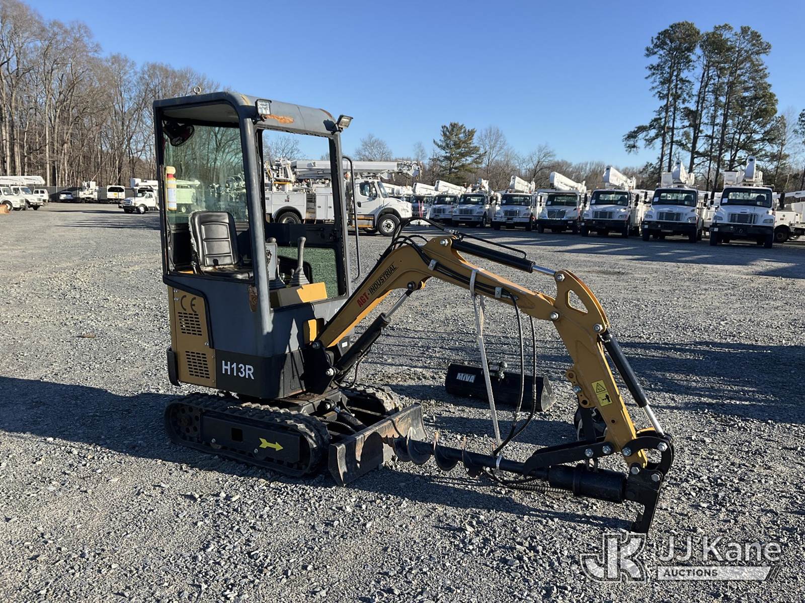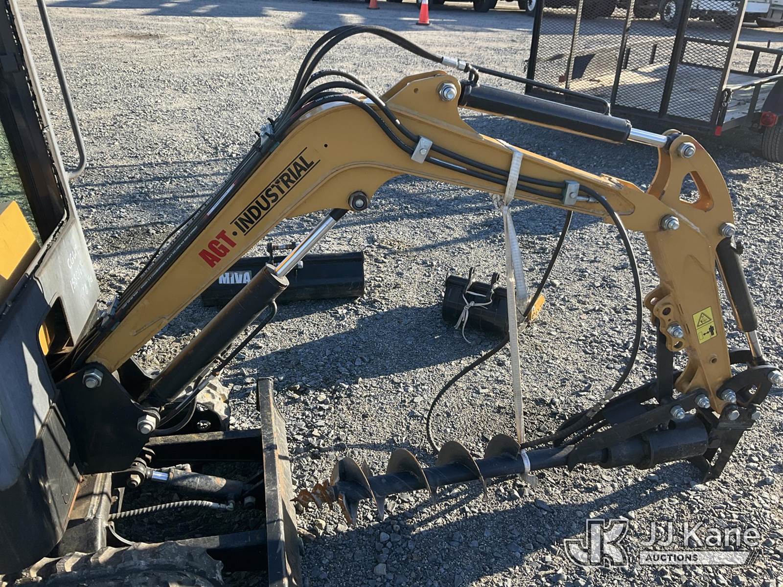 2024 AGT Industrial H13R Mini Hydraulic Excavator, s/n A2402096910, 1-cyl Hydraulic Drive, gas, with 3 ft stick, 6 in auger bit, 16 in QC digging bucket, 30 in QC digging bucket, aux hyd, backfill blade, rubber tracks & EROPS, (Runs, Moves & Operates) (Body Damage ) (Reads 20 hours) NOTE: This unit is being sold AS IS/WHERE IS via Timed Auction and is located in China Grove, NC. Inspection & preview days for this unit are the 2 business days prior to the first day of items closing for this auction, item is located at 820 E NC Hwy 152 China Grove, NC 28023 and hours of operations are 8a-4p. For pre-sale questions, please contact Office Staff @ (704) 674-1113. (Buyer is responsible for removal. Assistance by consignor or JJ Kane Auctions is not assured.)