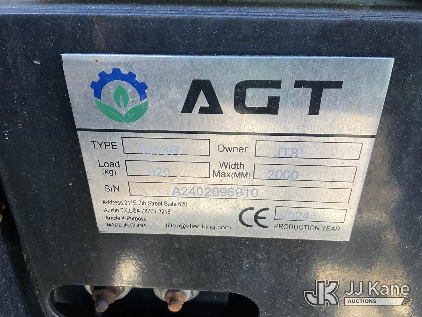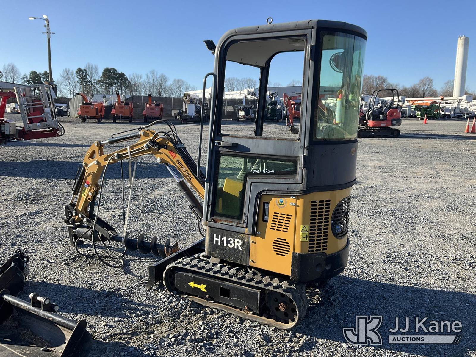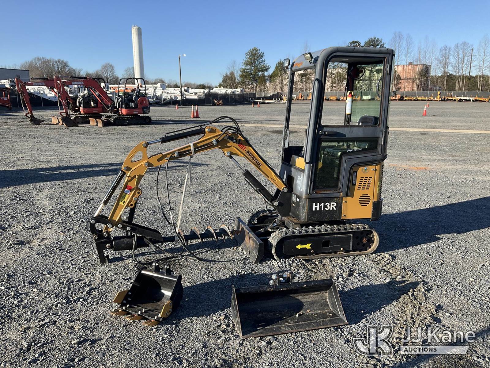 2024 AGT Industrial H13R Mini Hydraulic Excavator, s/n A2402096910, 1-cyl Hydraulic Drive, gas, with 3 ft stick, 6 in auger bit, 16 in QC digging bucket, 30 in QC digging bucket, aux hyd, backfill blade, rubber tracks & EROPS, (Runs, Moves & Operates) (Body Damage ) (Reads 20 hours) NOTE: This unit is being sold AS IS/WHERE IS via Timed Auction and is located in China Grove, NC. Inspection & preview days for this unit are the 2 business days prior to the first day of items closing for this auction, item is located at 820 E NC Hwy 152 China Grove, NC 28023 and hours of operations are 8a-4p. For pre-sale questions, please contact Office Staff @ (704) 674-1113. (Buyer is responsible for removal. Assistance by consignor or JJ Kane Auctions is not assured.)