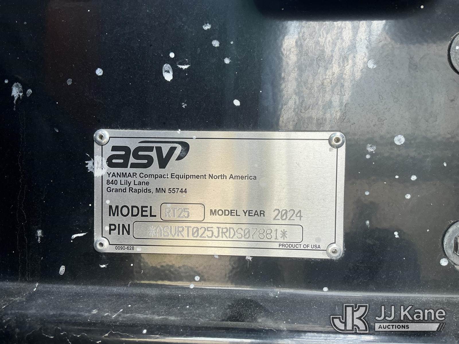 2024 ASV Posi-Track RT25 Crawler Skid Steer Loader, s/n ASVRT025JRDS07881, Perkins diesel, Hydrostatic, with GP bucket, aux hyd outlets & ROPS, (Runs, Moves, Operates) (Smokes) (Reads 405 hours) NOTE: This unit is being sold AS IS/WHERE IS via Timed Auction and is located in Thonotosassa, FL. Inspection & preview days for this unit are the 2 business days prior to the first day of items closing for this auction, item is located at 11720 N US 301 Thonotosassa, Fl 33592 and hours of operations are 8a-4p. For pre-sale questions, please contact Office Staff @ (813) 986-2485. (Buyer is responsible for removal. Assistance by consignor or JJ Kane Auctions is not assured.)