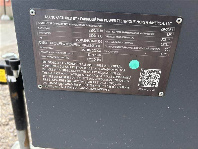 2024 Atlas Copco XAS188CD Air Compressor