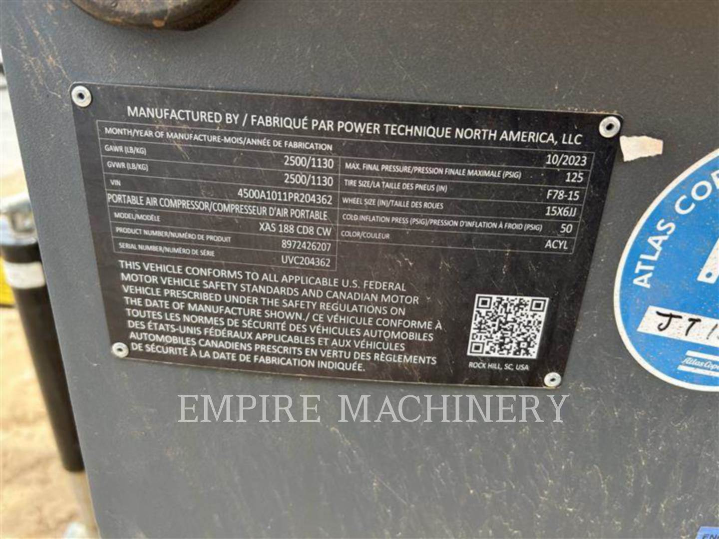 2025 Atlas Copco XAS188CD Air Compressor