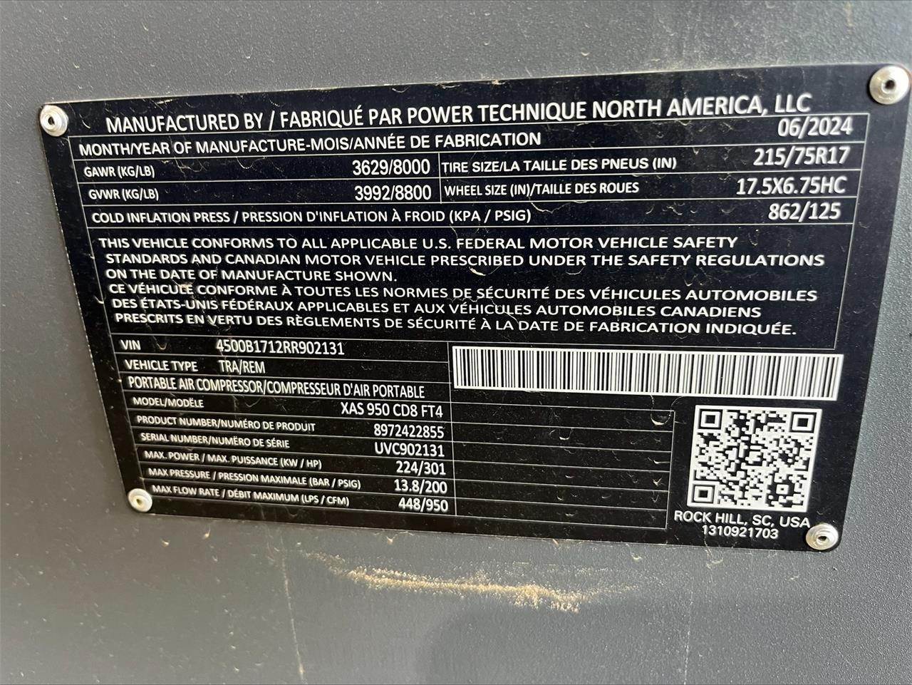 2024 Atlas Copco XAS950CD8 Air Compressor