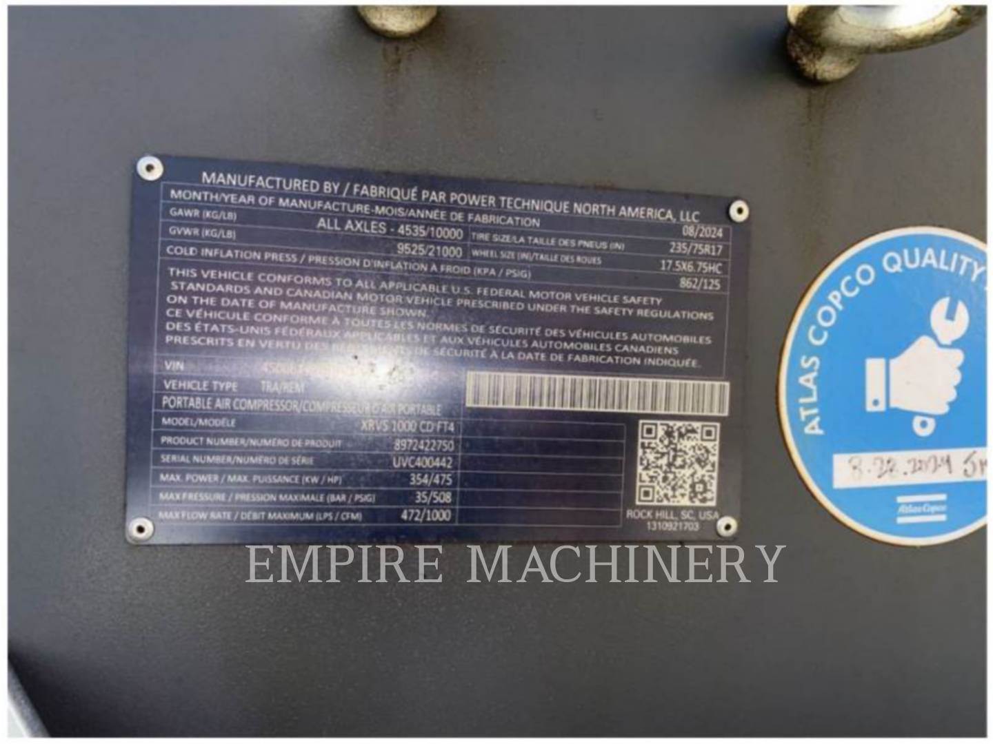 2024 Atlas Copco XRVS1000CD Air Compressor