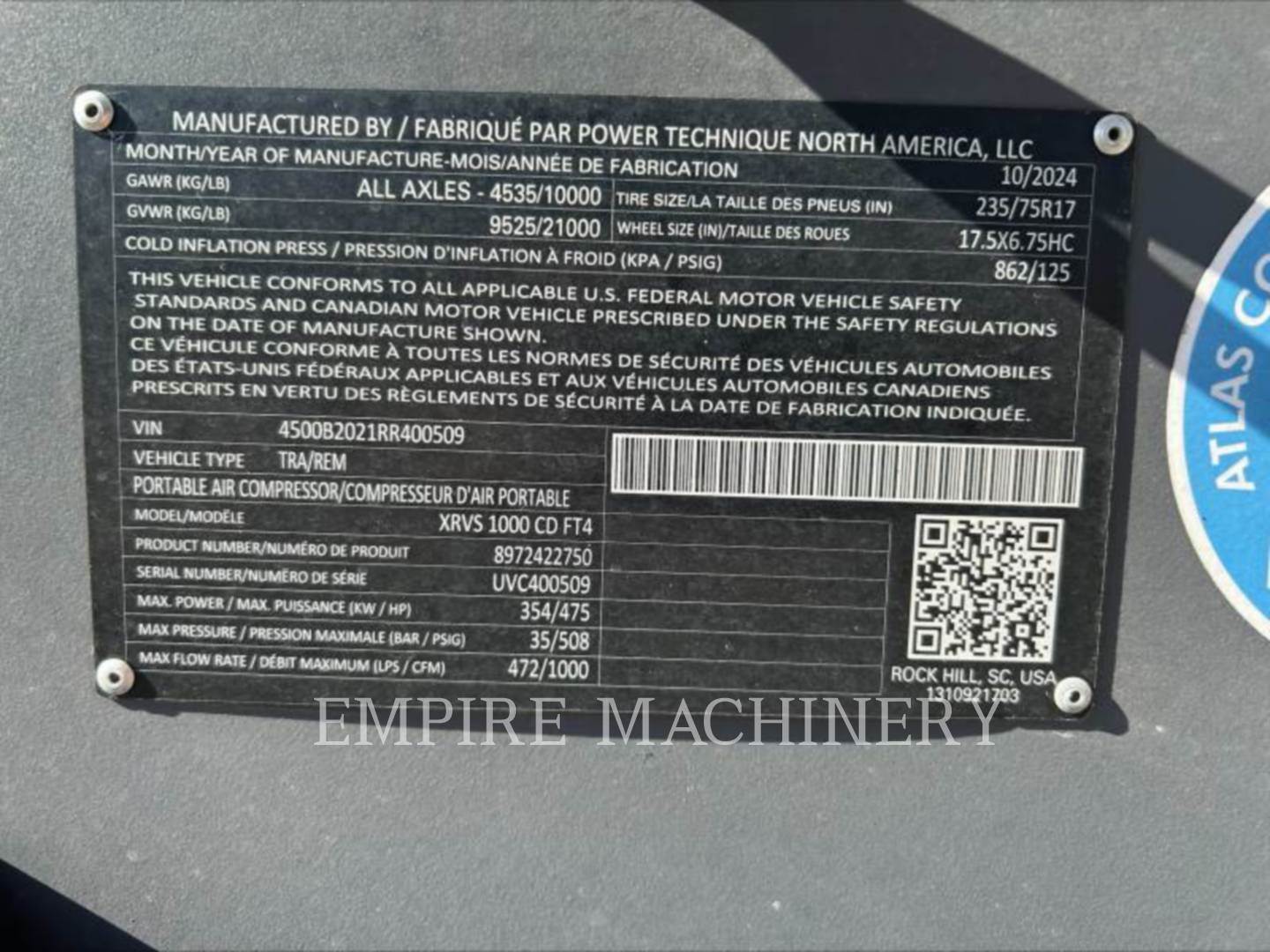 2024 Atlas Copco XRVS1000CD Air Compressor