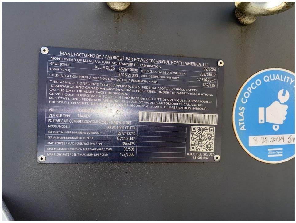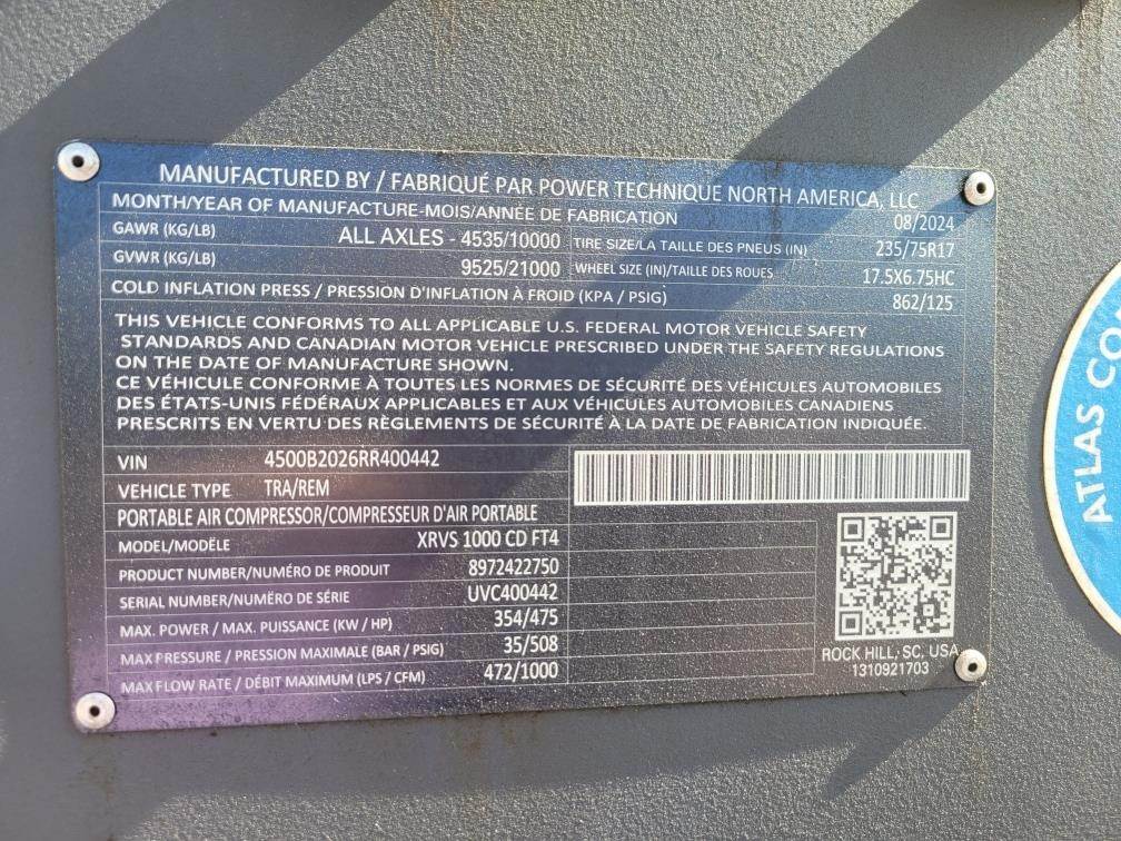 2024 Atlas Copco XRVS1000CD8 Air Compressor