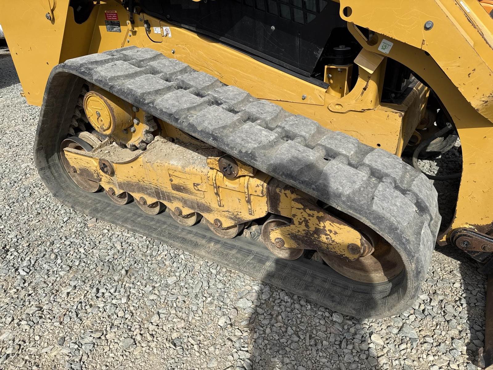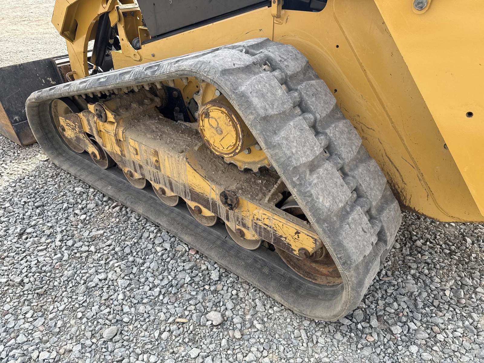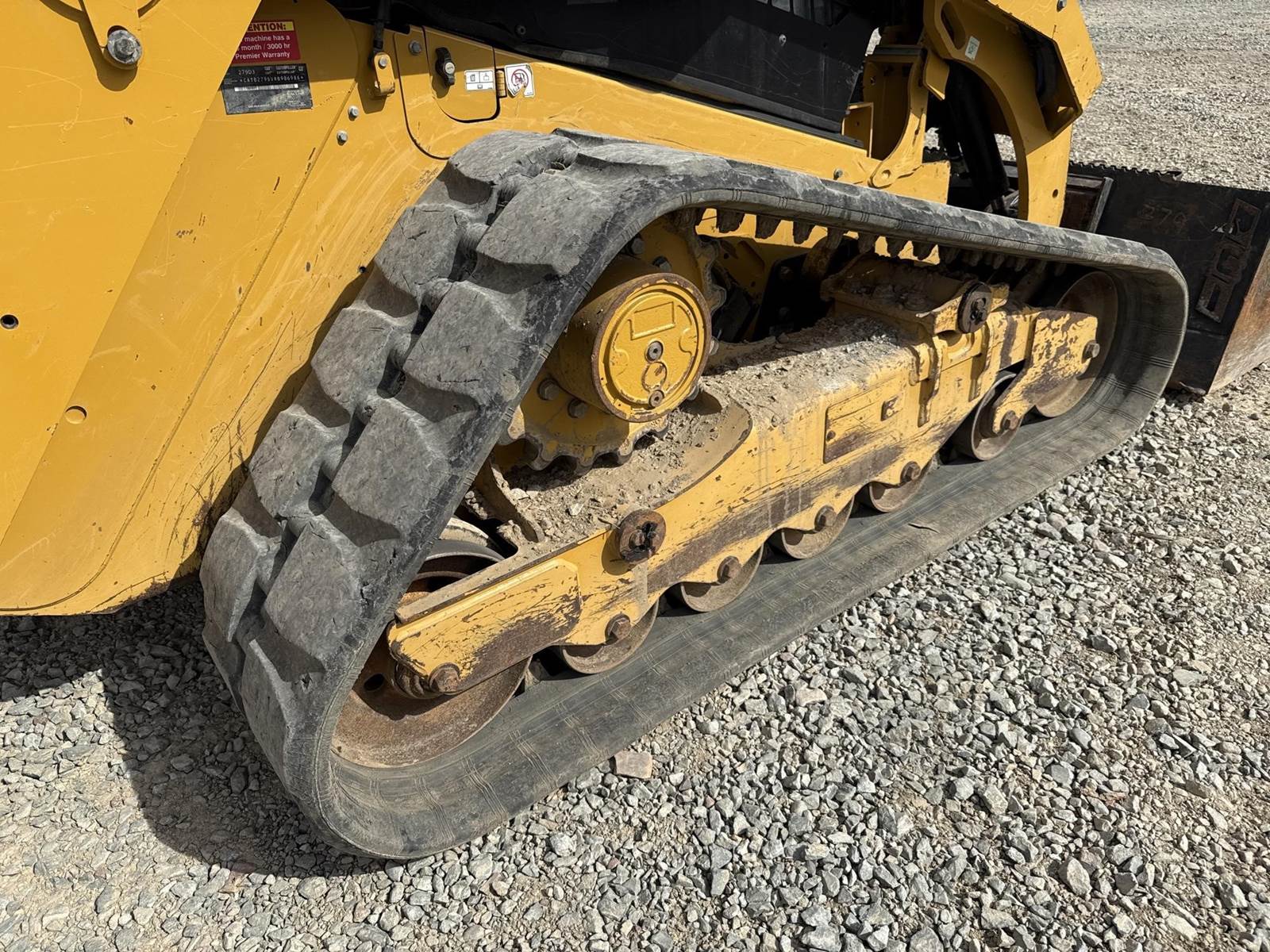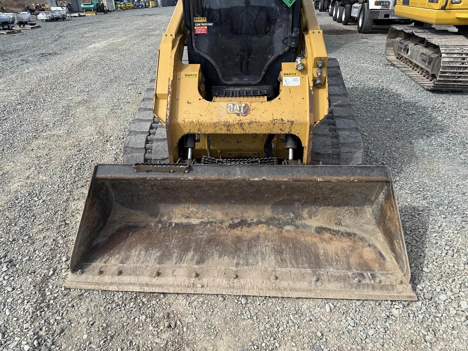 Caterpillar 3.3L Turbo Diesel Engine, 2 Speed, Hydraulic Quick Attach, Approx. 80" Bucket, Auxiliary Hydraulics, EROPS, Joystick Controls, Heated Seat, Heat/AC, Bluetooth Radio, Approx. 18" Track Width, Approx. 78" Overall Track Width