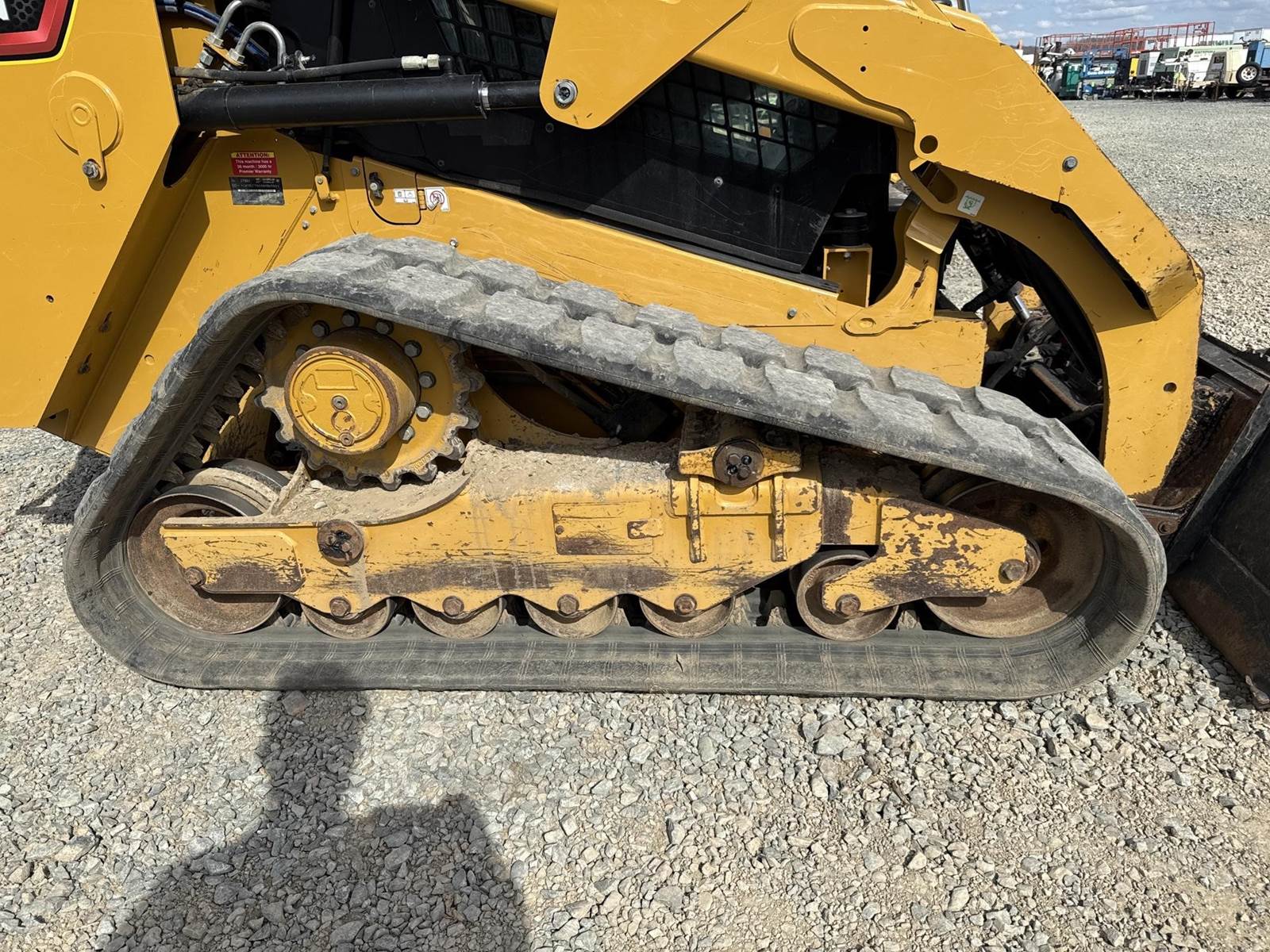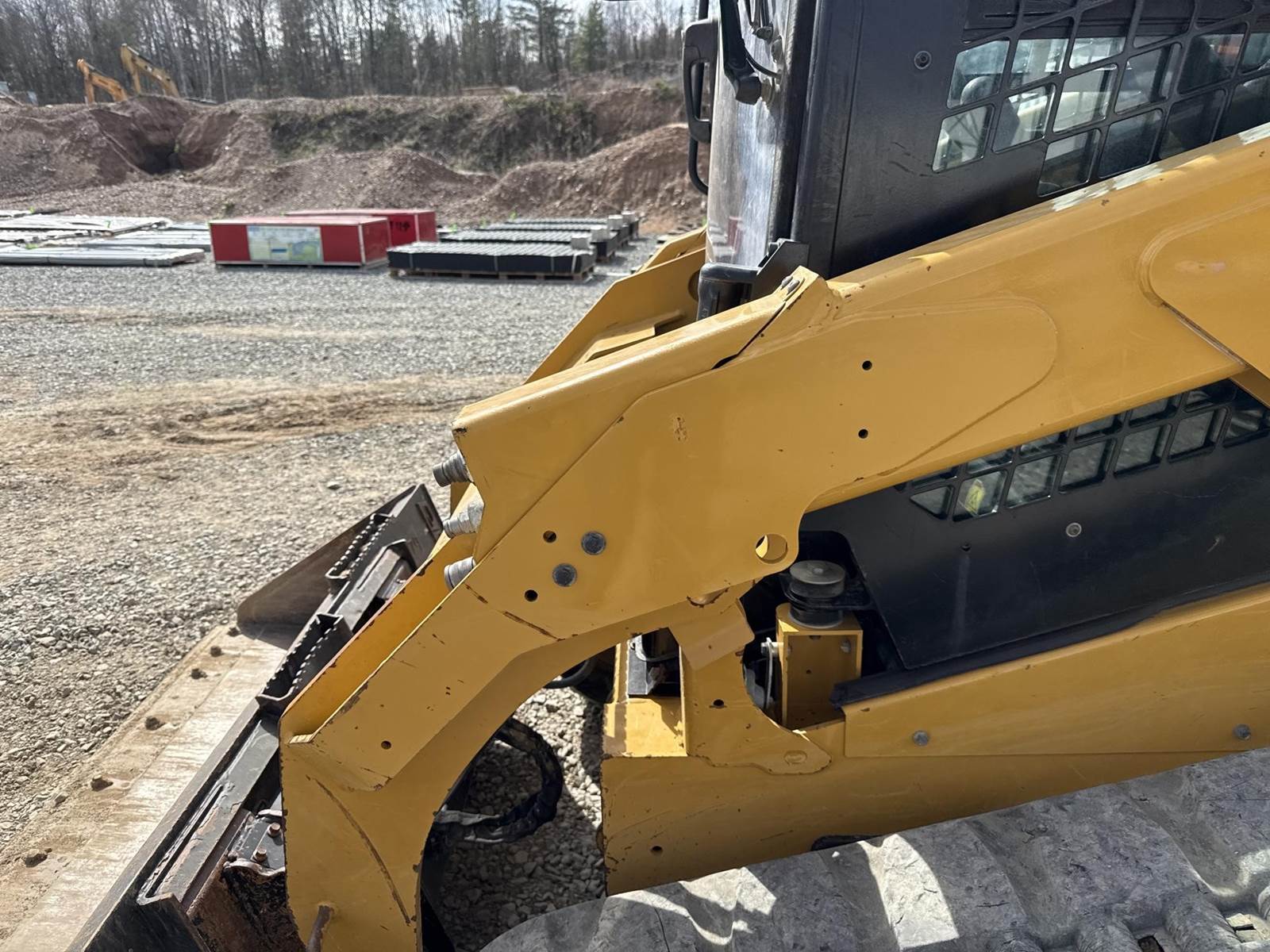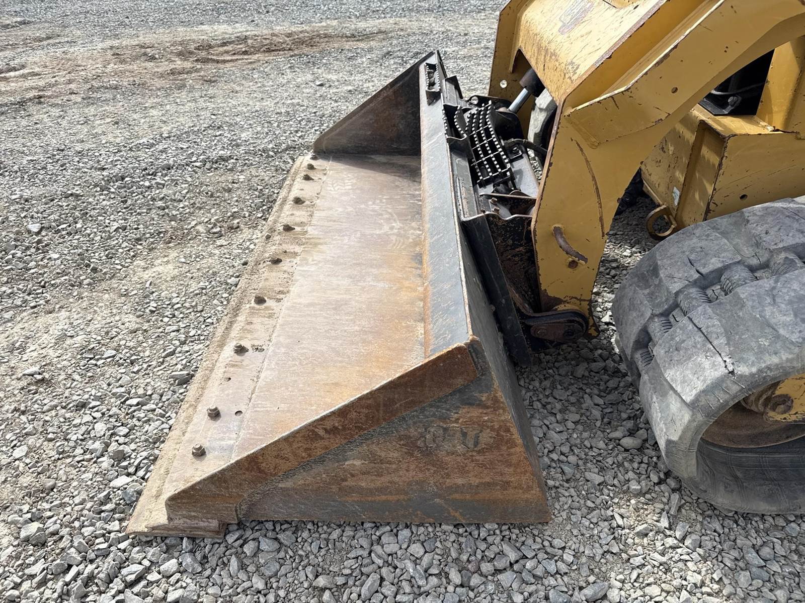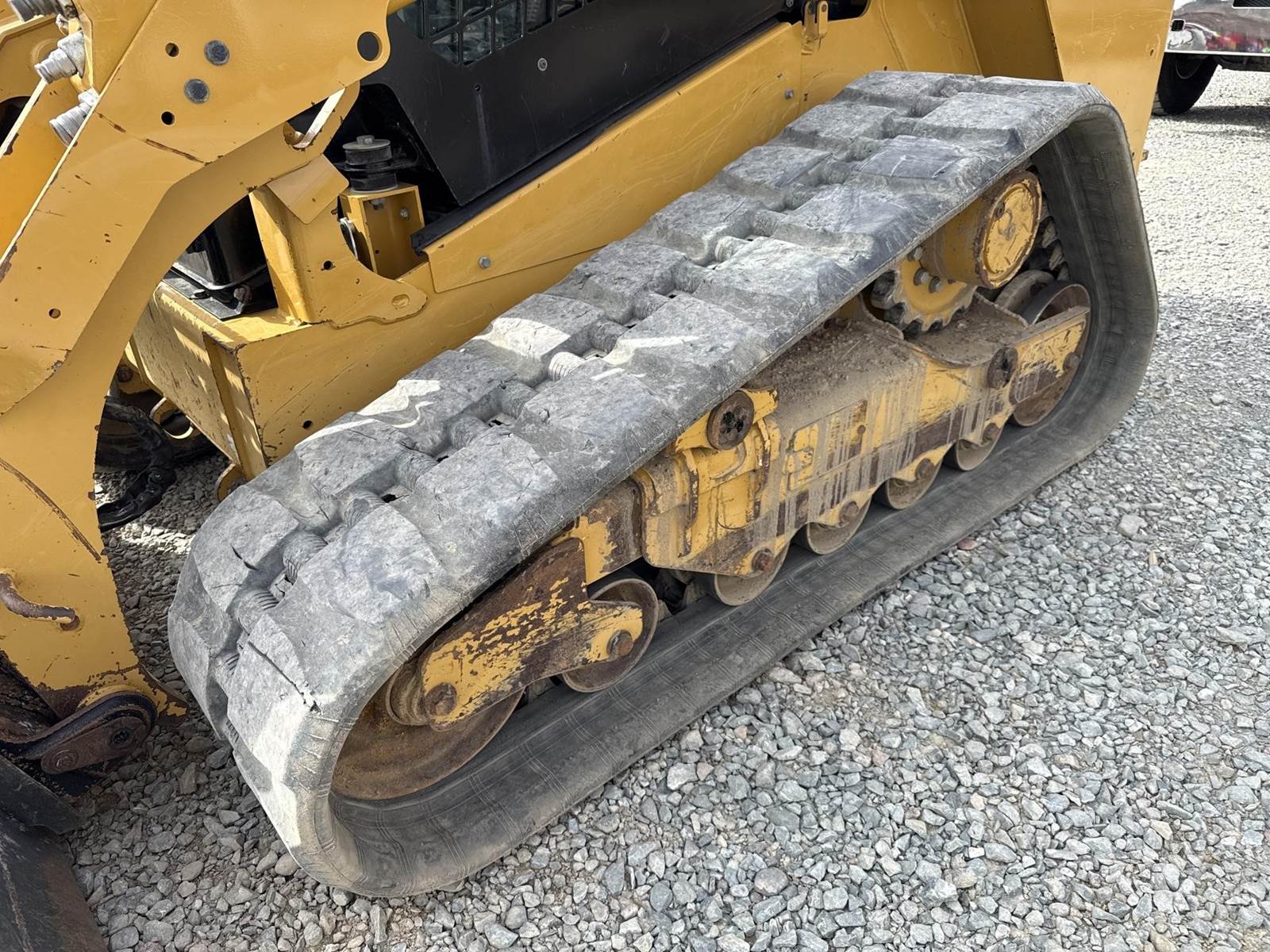 Caterpillar 3.3L Turbo Diesel Engine, 2 Speed, Hydraulic Quick Attach, Approx. 80" Bucket, Auxiliary Hydraulics, EROPS, Joystick Controls, Heated Seat, Heat/AC, Bluetooth Radio, Approx. 18" Track Width, Approx. 78" Overall Track Width