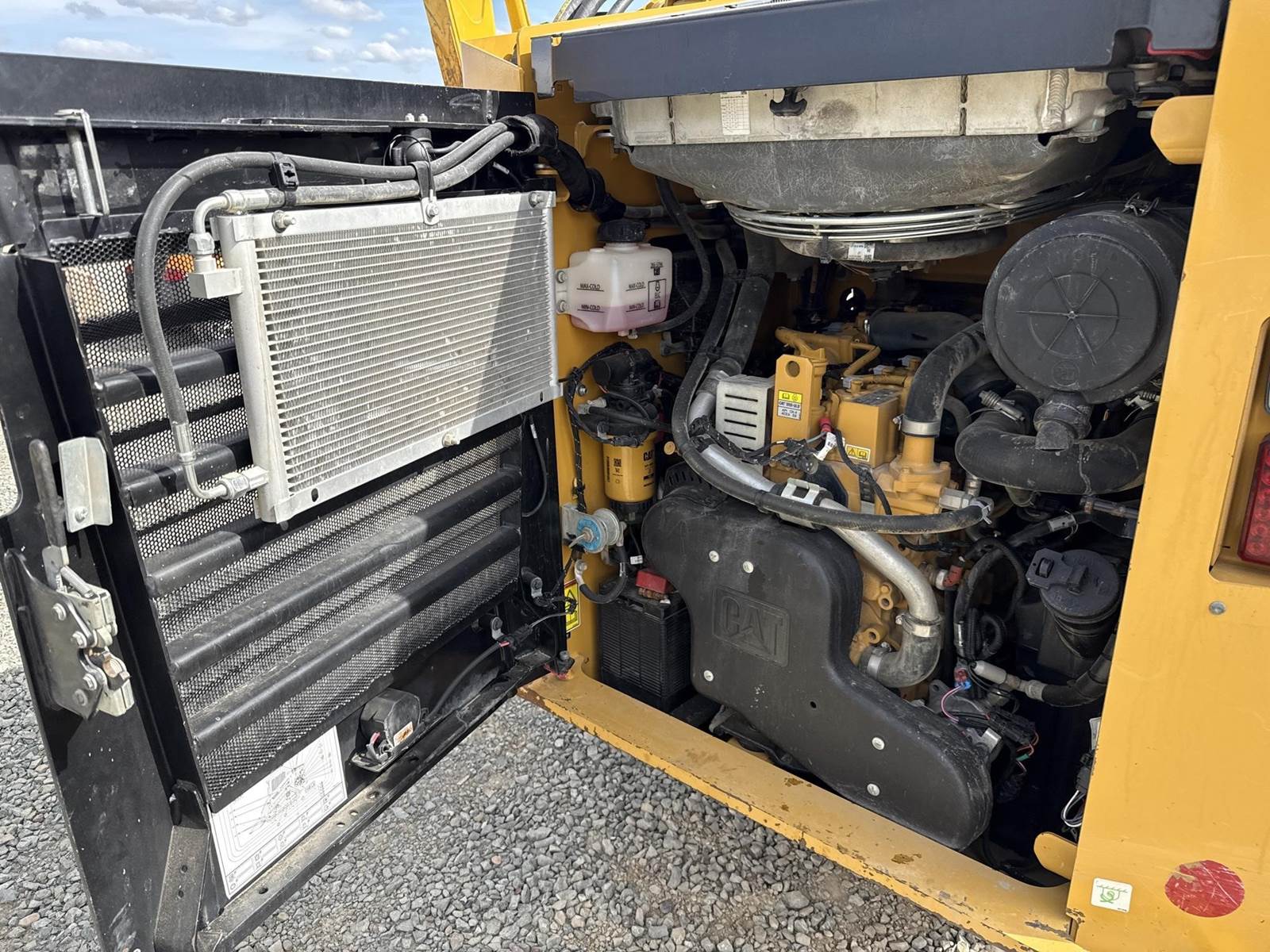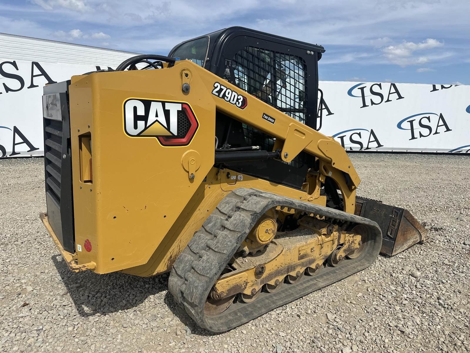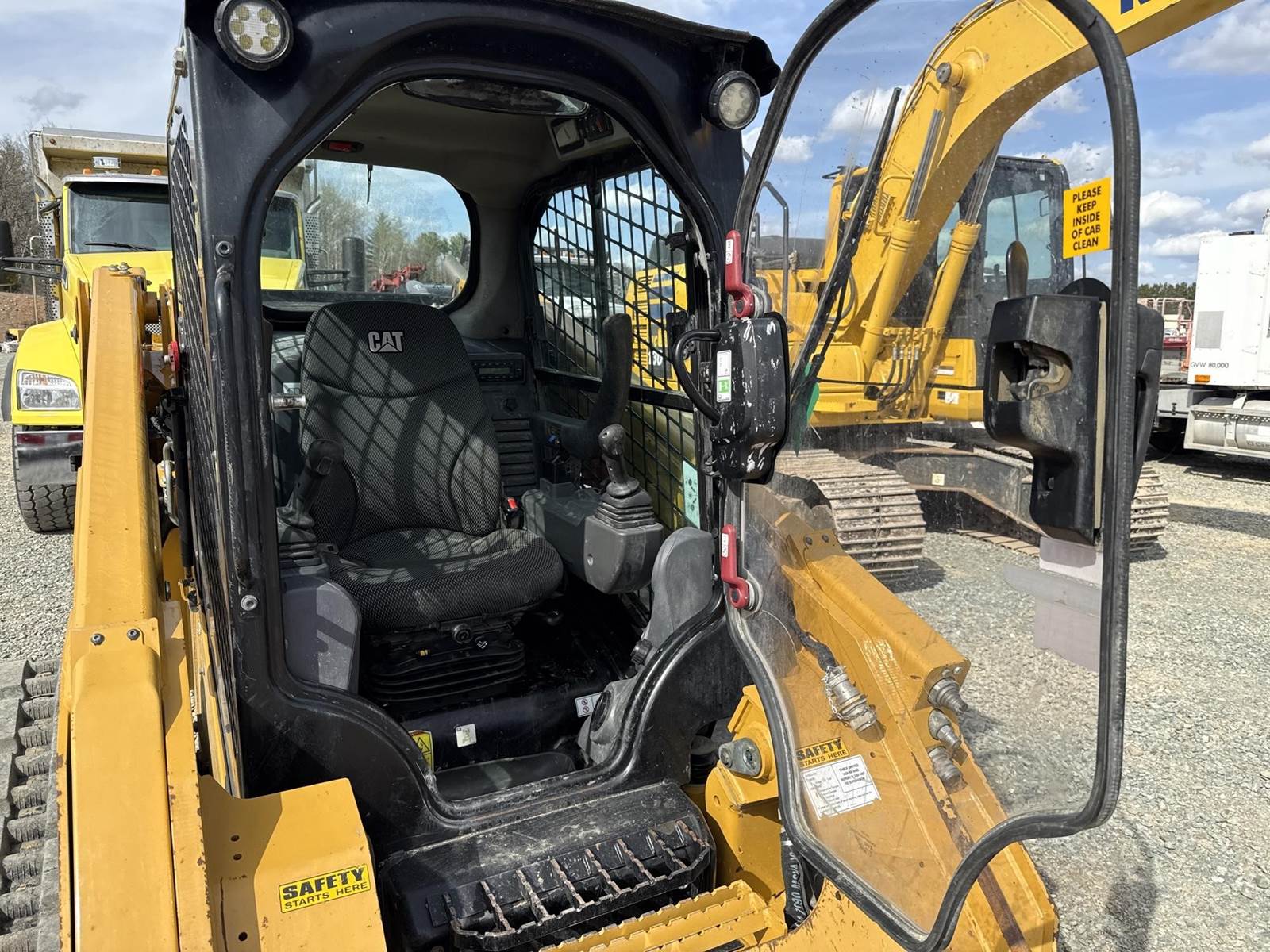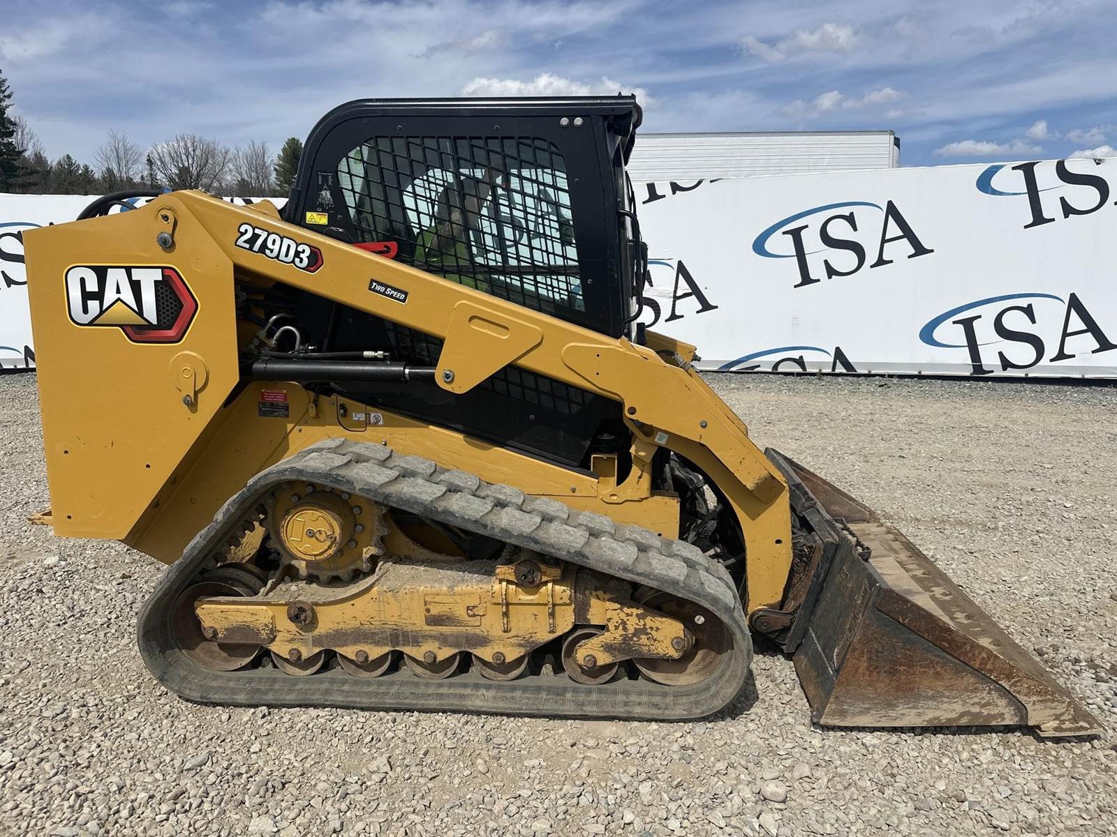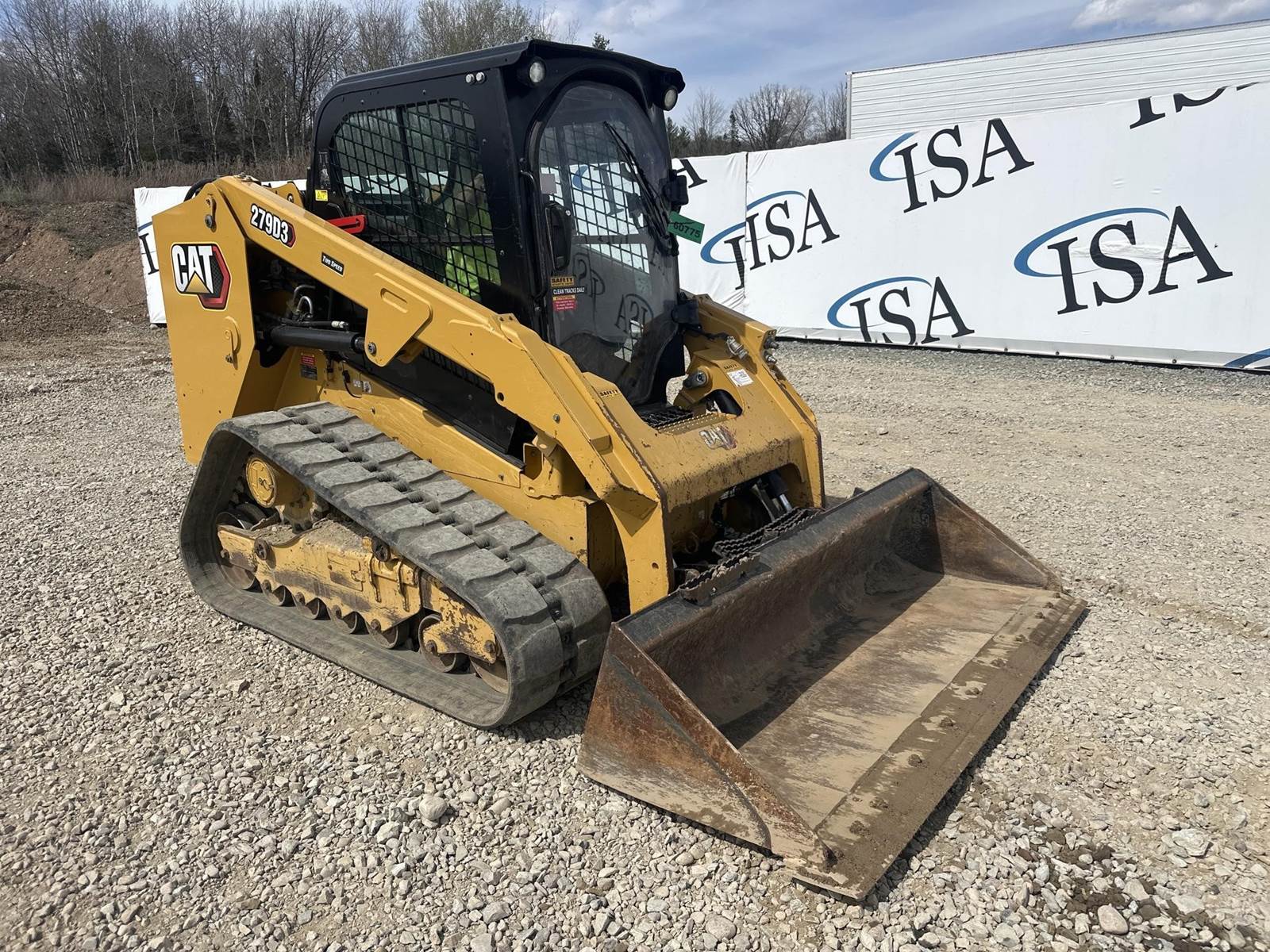 Caterpillar 3.3L Turbo Diesel Engine, 2 Speed, Hydraulic Quick Attach, Approx. 80" Bucket, Auxiliary Hydraulics, EROPS, Joystick Controls, Heated Seat, Heat/AC, Bluetooth Radio, Approx. 18" Track Width, Approx. 78" Overall Track Width