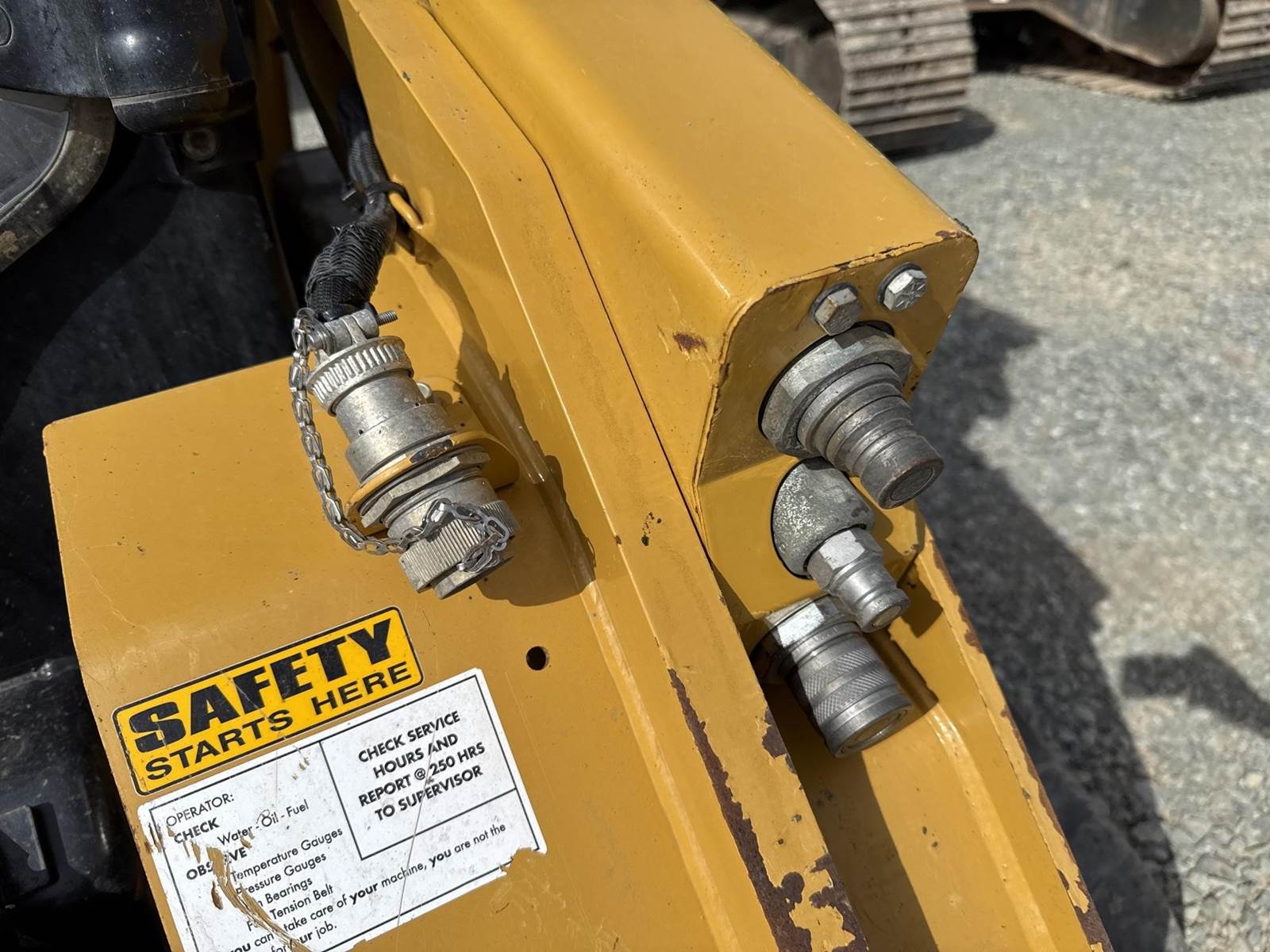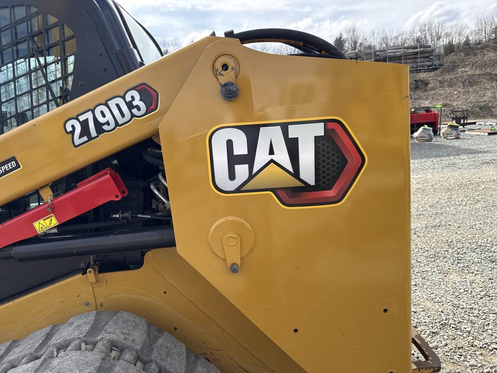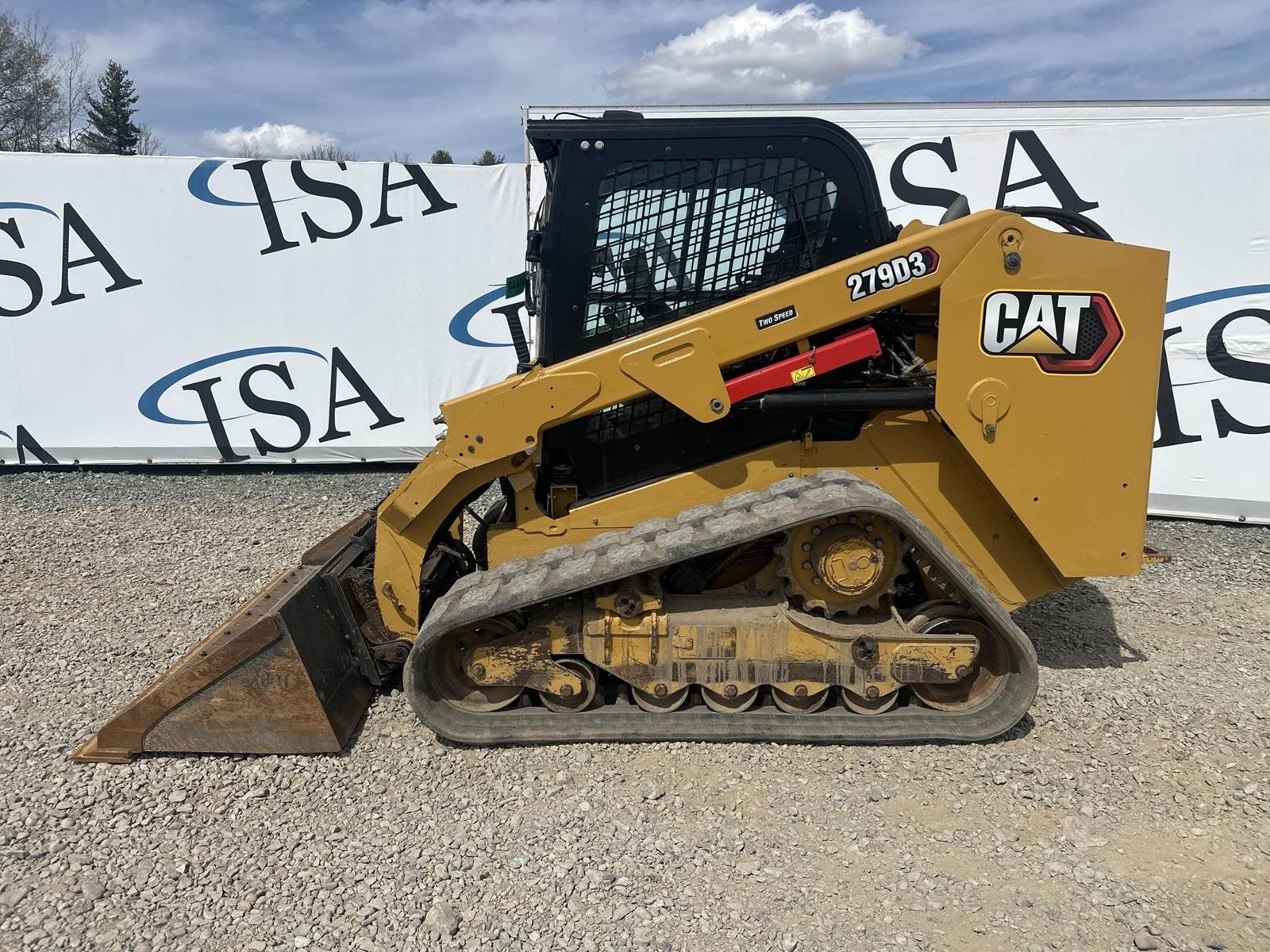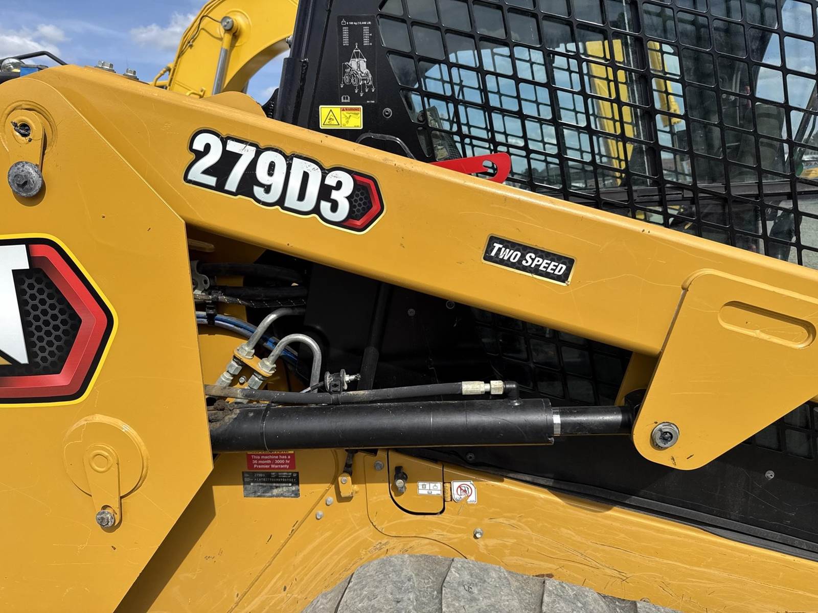 Caterpillar 3.3L Turbo Diesel Engine, 2 Speed, Hydraulic Quick Attach, Approx. 80" Bucket, Auxiliary Hydraulics, EROPS, Joystick Controls, Heated Seat, Heat/AC, Bluetooth Radio, Approx. 18" Track Width, Approx. 78" Overall Track Width