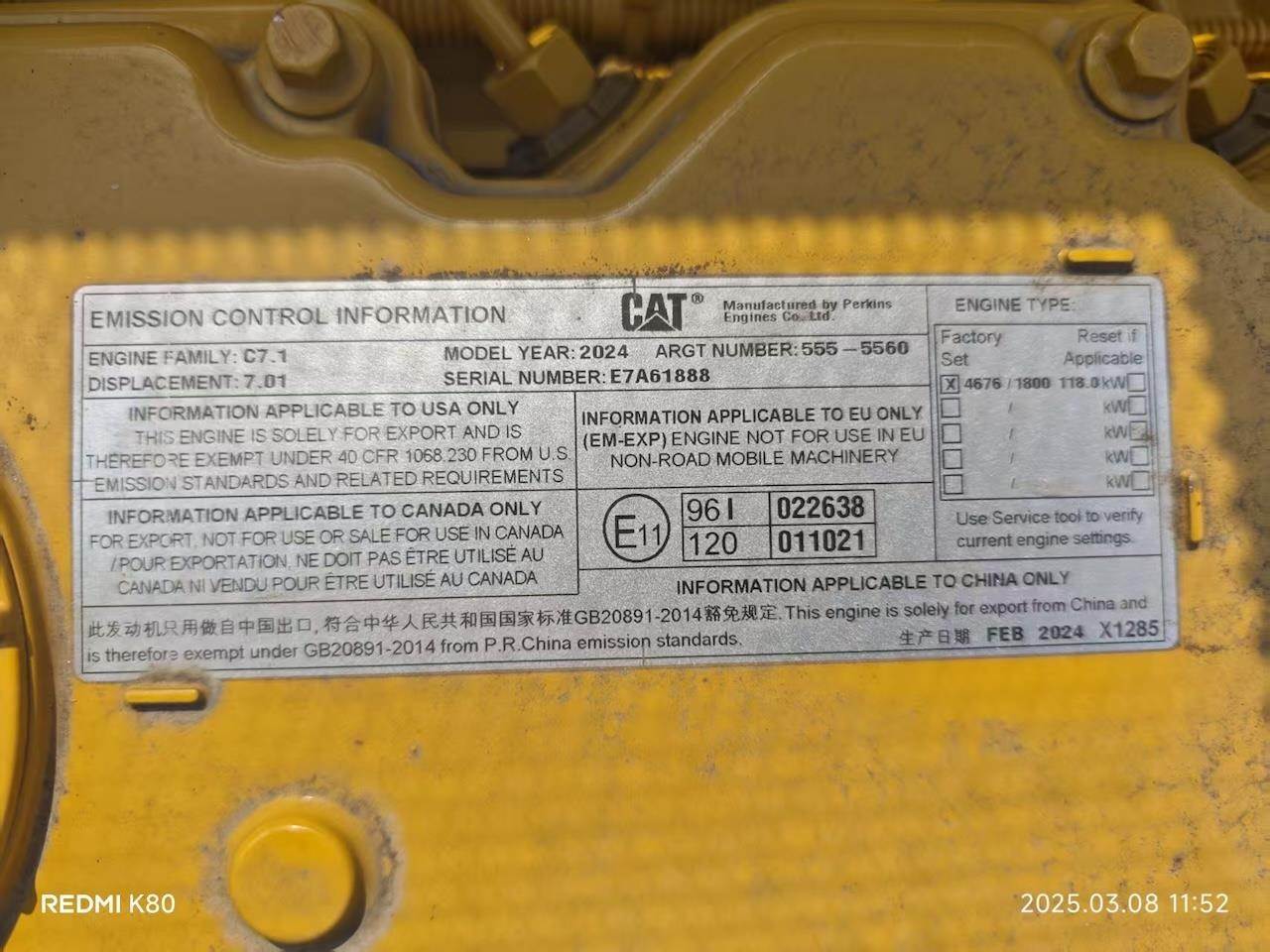 2024 CAT 320 con 25 hours