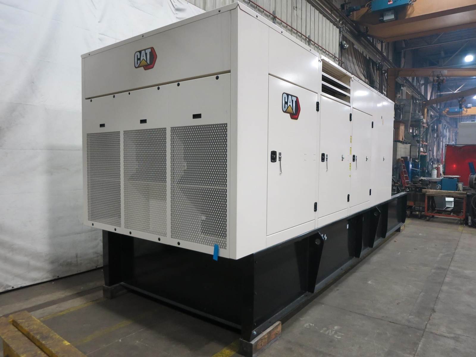 New Caterpillar 800 kW standby (725 kW prime) diesel generator set, SN-GNF00195. CAT C27 engine rated 1214 HP at 1800 RPM, SN-MJE05535, EPA Tier 2 emissions. 3/60/277/480V. 1200 Amp main-line circuit breaker. UL 2200 listed generator package. IBC Seismic certified. Engine cooling radiator rated 48C/118F ambient. GCCP 1.2 digital control panel. EnerGenius battery charger 10 Amp. Coolant heater. Sound attenuated enclosure. 2100 gallon UL142 listed sub-base fuel tank with secondary containment. 0 Hrs. Year 2024. Standard 5 year CAT warranty. Start up not included. Overall dimensions W x L x H, 30,000 lbs. FOB Edinburgh, IN.
