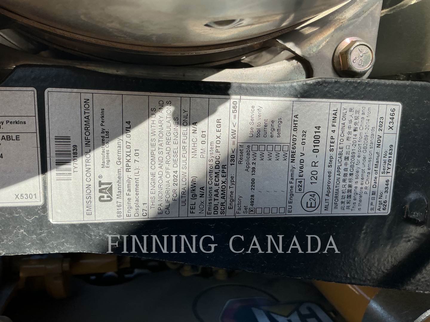 Warranty: If sold within Finning territory: Remaining 36 Month / 5000 Hour Premier to July 27, 2027 with Travel