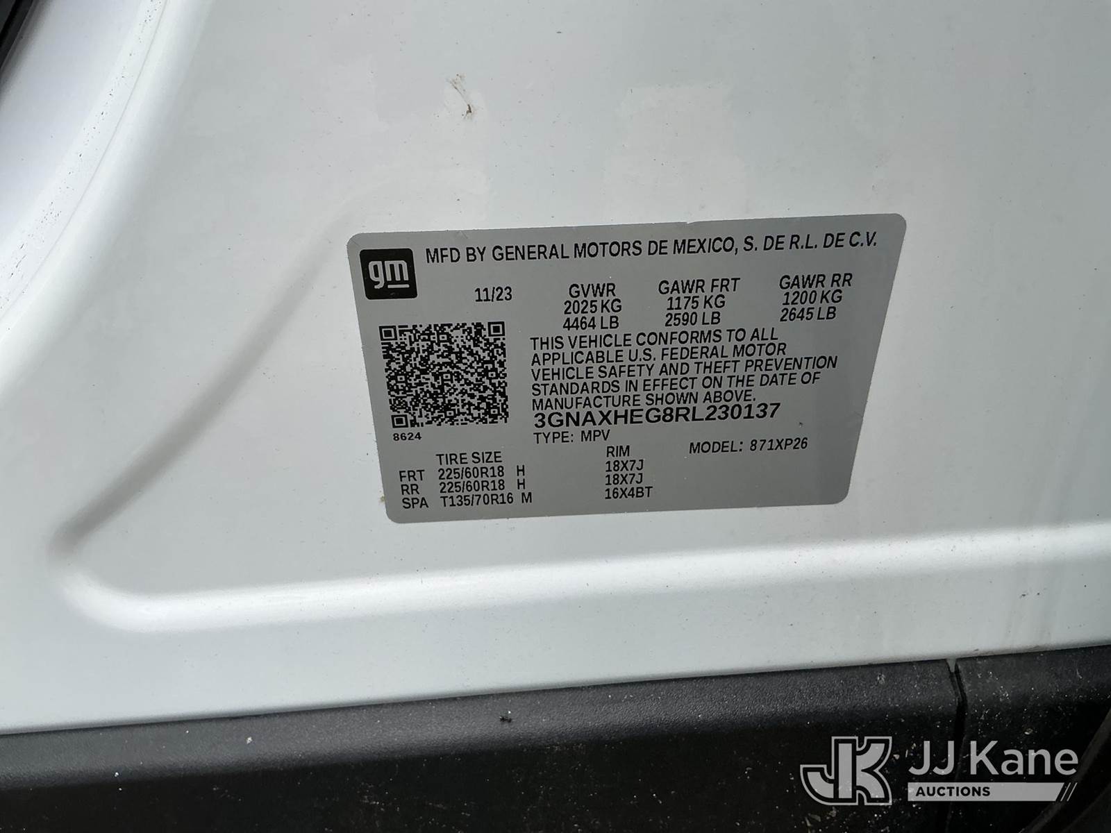 2024 Chevrolet Equinox 4-Door Sport Utility Vehicle, 1.5L L4 DOHC 16V TURBO Auto, FWD, Gas, A/C, True Mileage Unknown (Wrecked, Not Running, Condition Unknown)(No Key)(FL Residents Purchasing Titled Items - tax, title & registration fees will be collected at the maximum rate of $400.00 under 25,999 and $800.00 for Over 26,000 and $250.00 trailers - Proof of insurance is mandatory; Out of State Residents Purchasing Title Items - tax will be collected based upon your state rate.) This is a Titled Item NOTE: This unit is being sold AS IS/WHERE IS via Timed Auction and is located in Thonotosassa, FL. Inspection & preview days for this unit are the 2 business days prior to the first day of items closing for this auction, item is located at 11720 N US 301 Thonotosassa, Fl 33592 and hours of operations are 8a-4p. For more information & removal arrangements please contact Office Staff @ 813-986-2485. (Buyer is responsible for removal. Assistance by consignor or JJ Kane Auctioneers is not assured.)