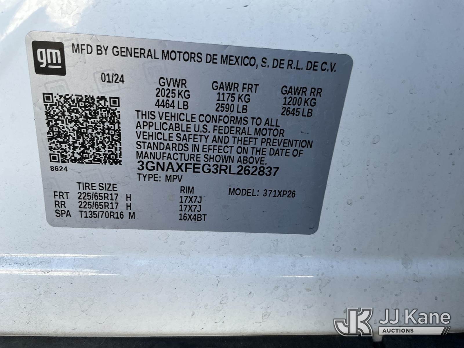 2024 Chevrolet Equinox 4-Door Sport Utility Vehicle, 1.5L L4 DOHC 16V TURBO gas, FWD, 6-Speed Automatic, A/C, (104,778 miles) (Runs & Moves) (Has Wrap That Is Peeled Off In Areas) This is a Titled Item NOTE: This unit is being sold AS IS/WHERE IS via Timed Auction and is located in Las Vegas, NV. Inspection & preview days for this unit are the 2 business days prior to the first day of items closing for this auction, item is located at 14655 Grand Valley Pkwy Las Vegas, NV 89165 and hours of operations are 8a-4p. Titles executed exactly as bidder registered. Ensure your name and/or business name and address in JJ Kane and/or ProxiBid is correct before bidding. For pre-sale questions, please contact Office Staff @ (801) 519-0123 and provide sale date and lot number. Las Vegas Dealer License Number DLR000053086 / OHV000053094. (Buyer is responsible for removal. Assistance by consignor or JJ Kane Auctions is not assured.)