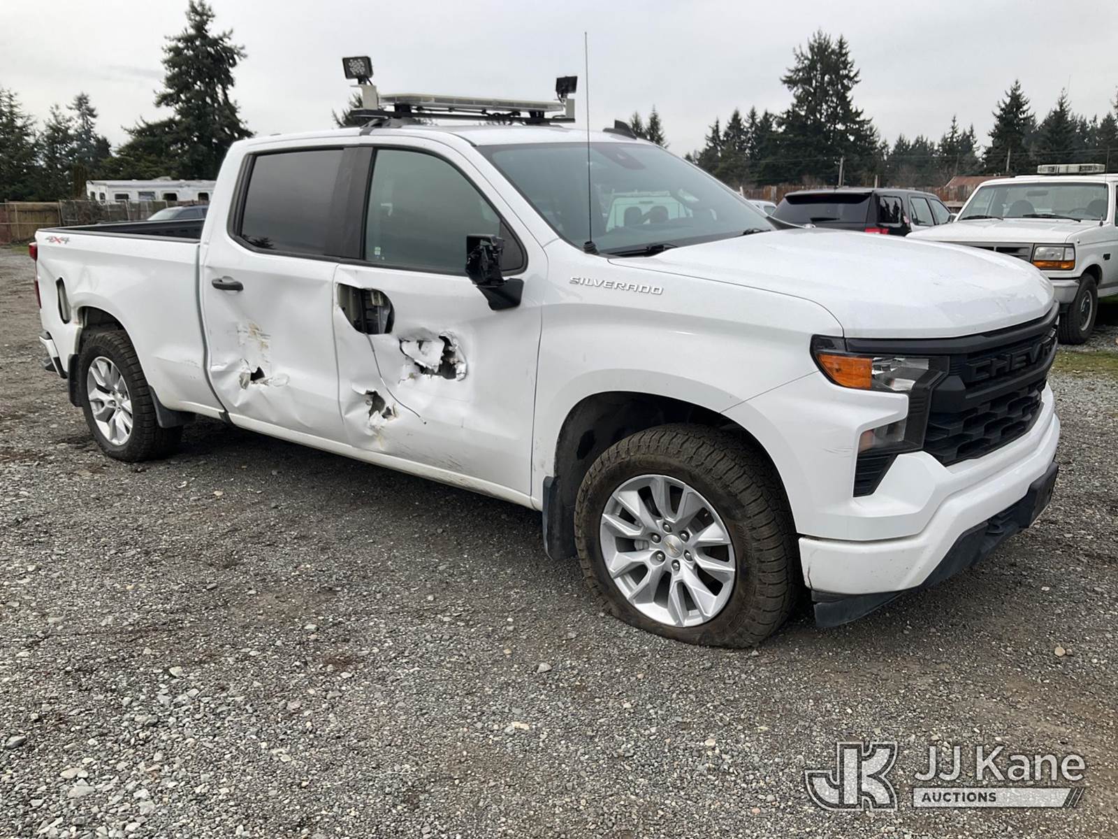 2024 Chevrolet Silverado 1500 4x4 Crew-Cab Pickup Truck, 2.7L L4 DOHC 16V TURBO gas, 6-Speed Automatic, A/C, (29,888 miles) (Runs & Moves) (Service Steering Column Lock Warning On, Passenger Side Front Tire Flat, Body/Paint Damage, Will Need To Be Towed) This is a Titled Item NOTE: This unit is being sold AS IS/WHERE IS via Timed Auction and is located in Tacoma, WA. Inspection & preview days for this unit are by appointment only; please contact us at contact@jjkane.com or 84-Go-JJKane for more details. (Buyer is responsible for removal. Assistance by consignor or JJ Kane Auctions is not assured.)
