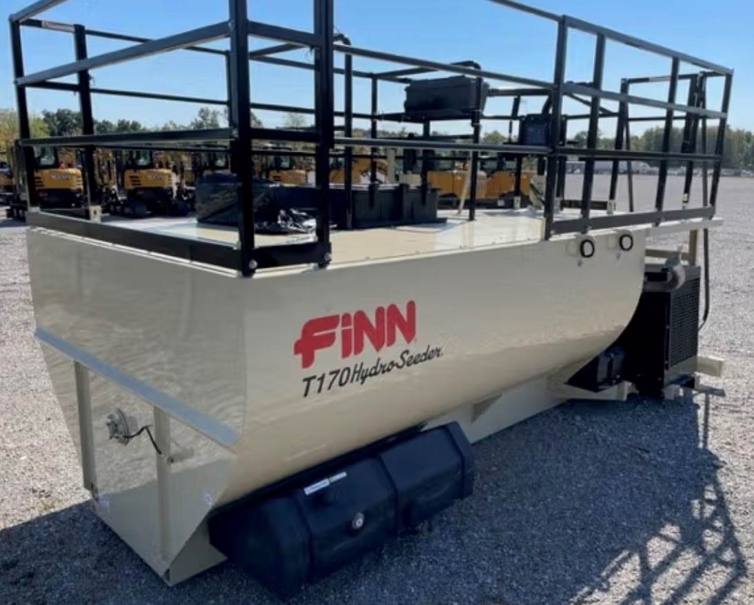 2024 FINN T170 HYDROSEEDER, 270 HOURS, LIKE NEW CONDITION, 1700 GALLON CAPACITY, HOSE REEL AND SPRAY TOWER, WORK READY.