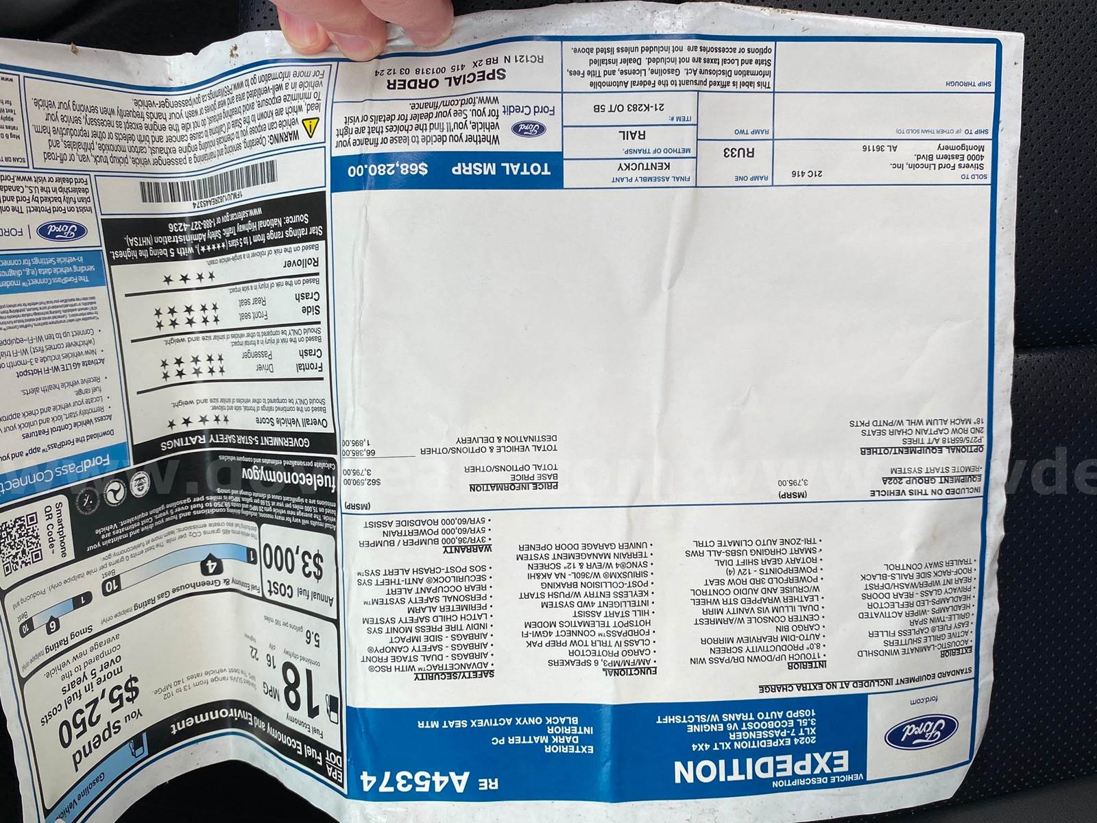 2024 Ford Expedition SPORT UTILITY 4-DR, 3.5L V6 DOHC 24V FFV. Excellent condition; interior, exterior, no mechanical problems, never had collision. As-Is, no warranty from seller. Perhaps manufacturer warranty remaining. Vehicle was assigned to chief executive law enforcement official. 32793 miles, 884 engine hours, 203 idle hours. Drive mode 2H, 4A and 4H. Has reserve, reserve price will not be revealed.