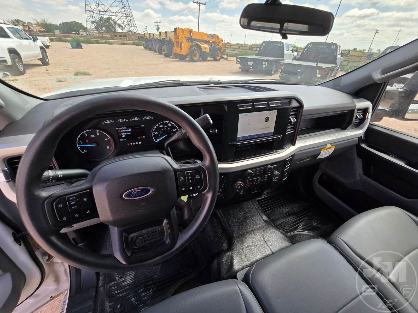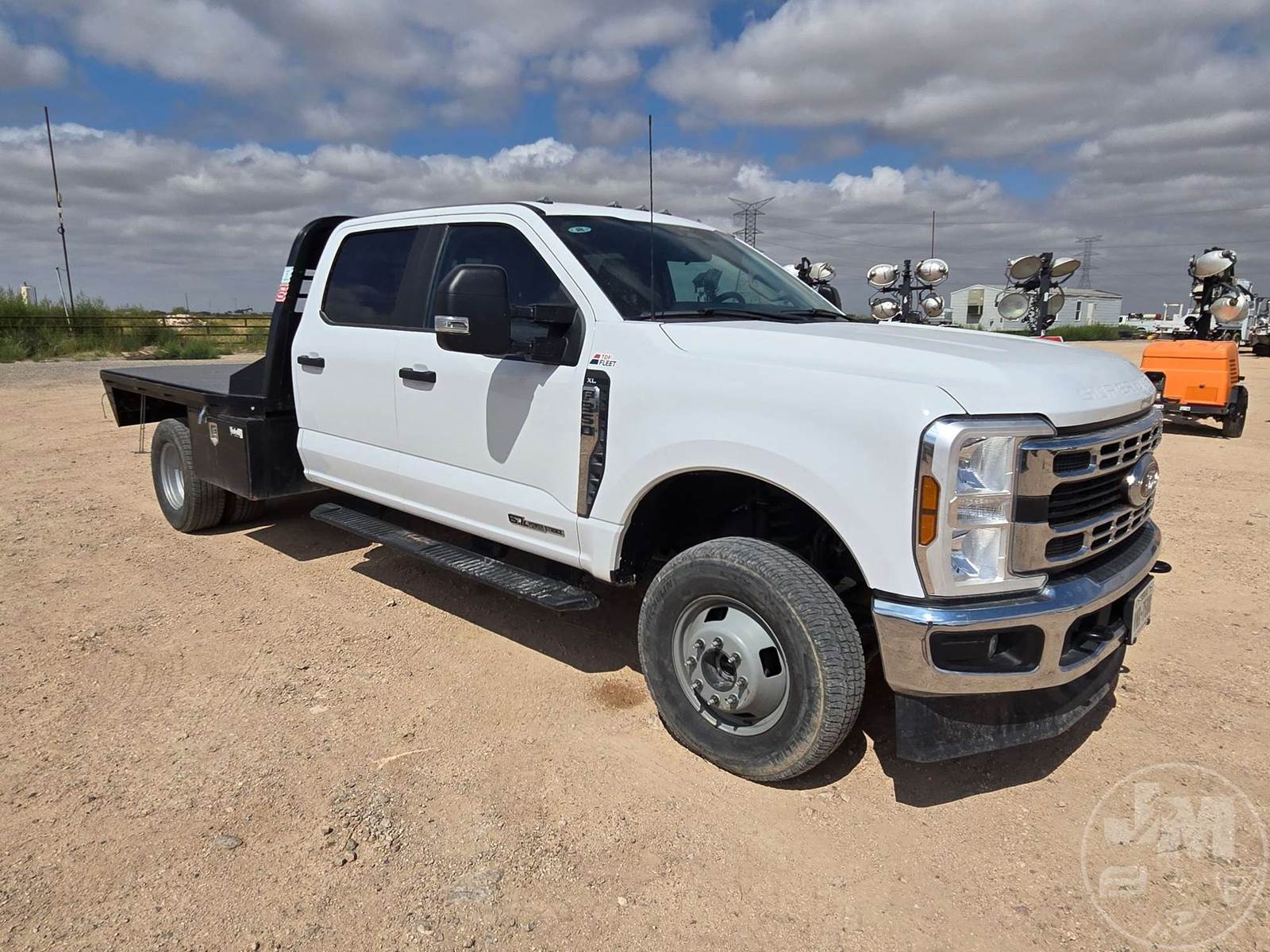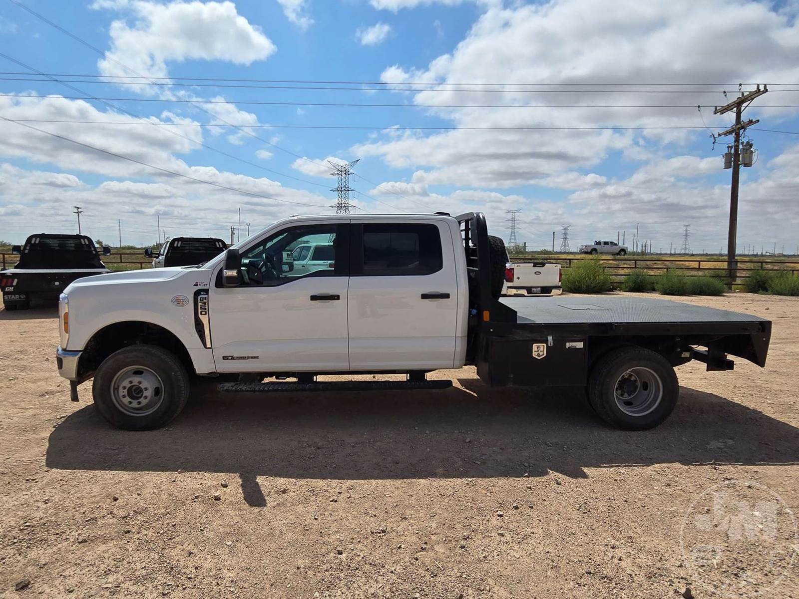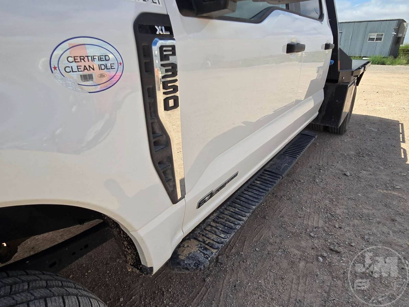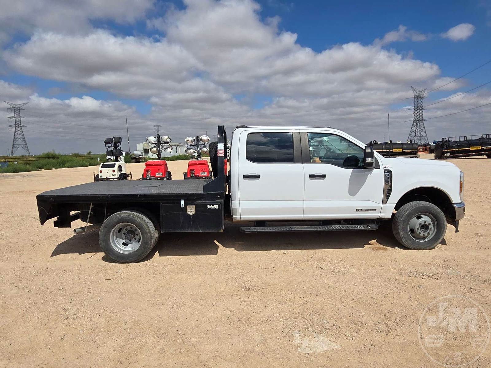 CREW CAB 4X4 FLATBED TRUCK, 9', STEEL BED, FORD 6.7L POWERSTROKE, AUTOMATIC, SPRING SUSPENSION, HEADACHE RACK, ENGINE BRAKE, CRUISE CONTROL, 176 IN. " WB, 14,000LBS GVWR, STEEL DISC WHEELS, 245/75R17 TIRES, OFF-ROAD DISPLAY, TOUCH SCREEN, USB/C 12V CHARGING PORTS, LEATHER, POWER LOCKS/WINDOWS, BACKUP CAMERA, DEF, TOOLBOXES, HOUR METER READS: 1,580, ODOMETER READS: 23,728