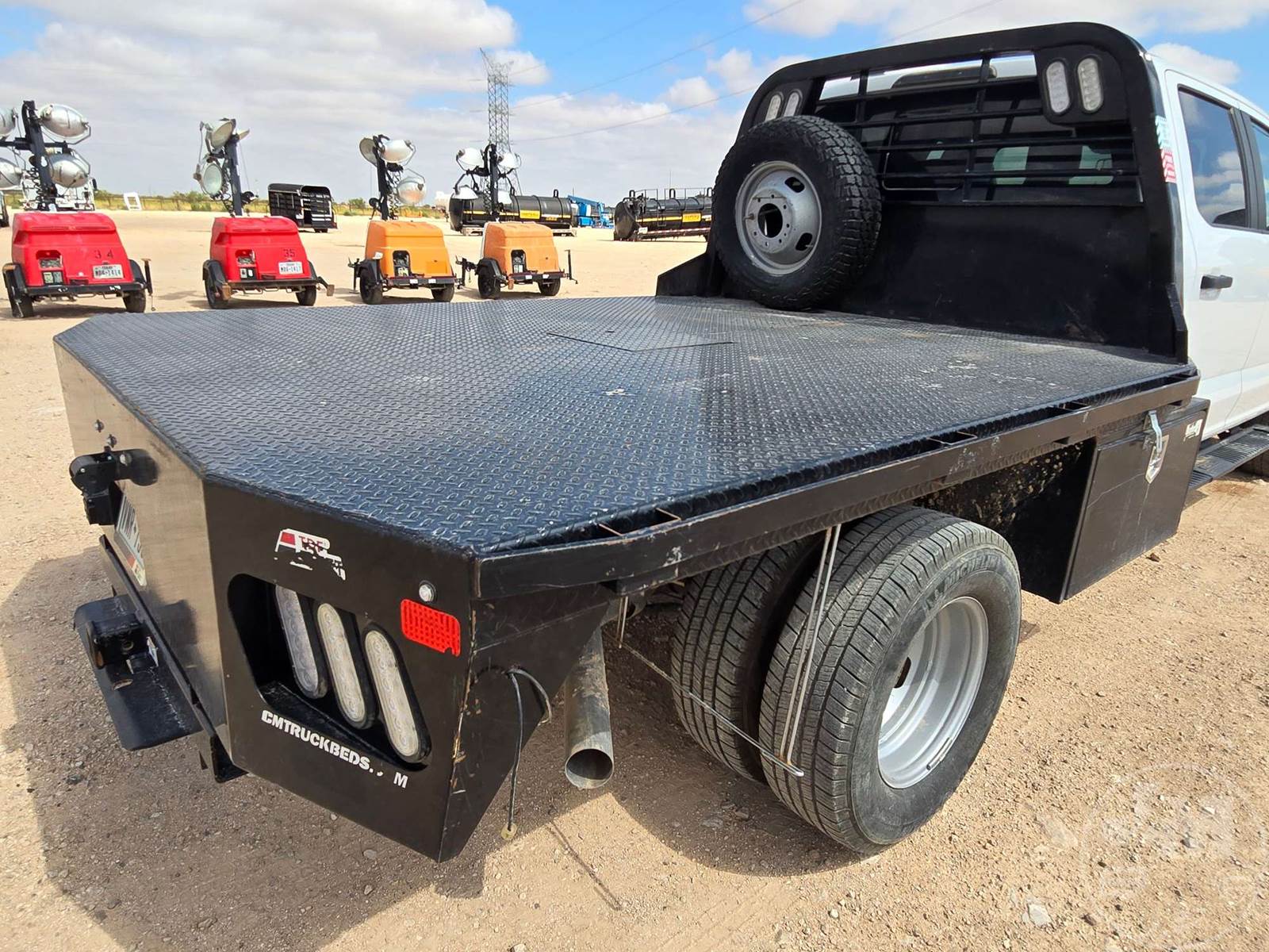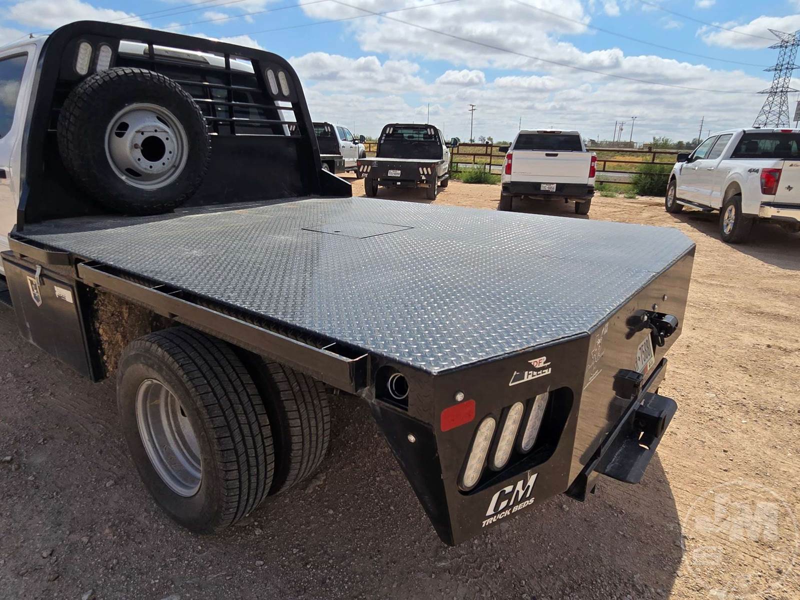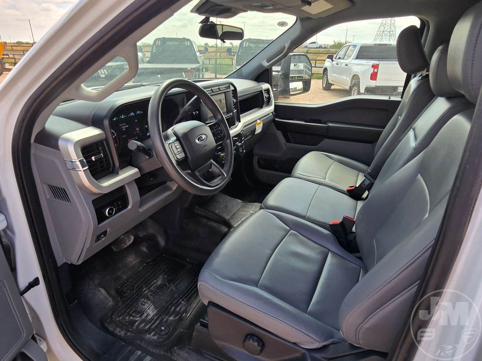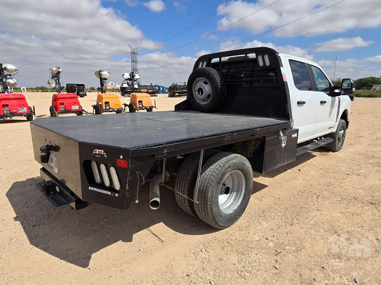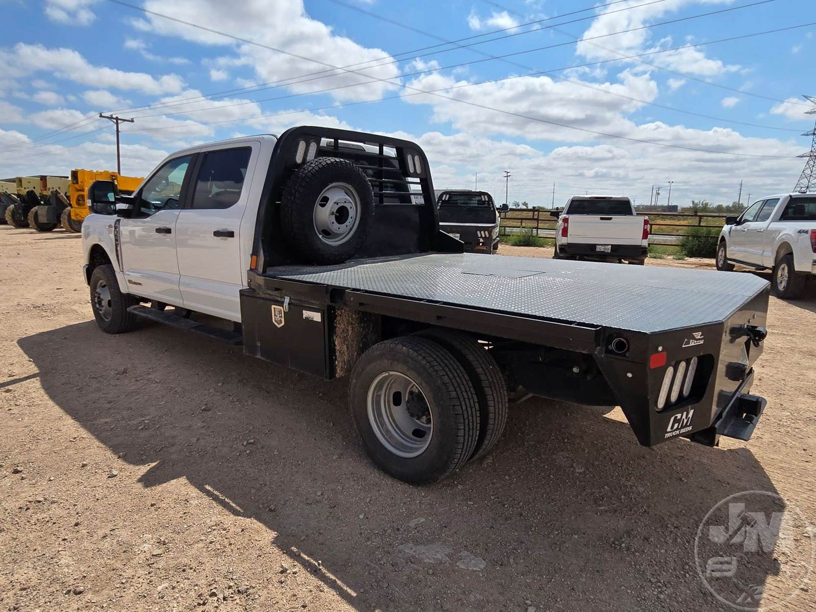CREW CAB 4X4 FLATBED TRUCK, 9', STEEL BED, FORD 6.7L POWERSTROKE, AUTOMATIC, SPRING SUSPENSION, HEADACHE RACK, ENGINE BRAKE, CRUISE CONTROL, 176 IN. " WB, 14,000LBS GVWR, STEEL DISC WHEELS, 245/75R17 TIRES, OFF-ROAD DISPLAY, TOUCH SCREEN, USB/C 12V CHARGING PORTS, LEATHER, POWER LOCKS/WINDOWS, BACKUP CAMERA, DEF, TOOLBOXES, HOUR METER READS: 1,580, ODOMETER READS: 23,728