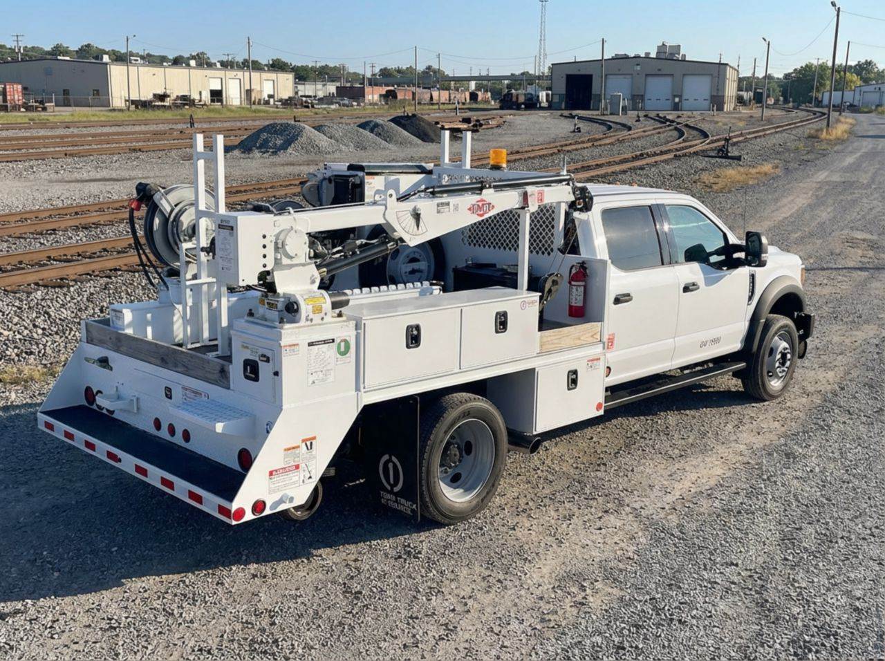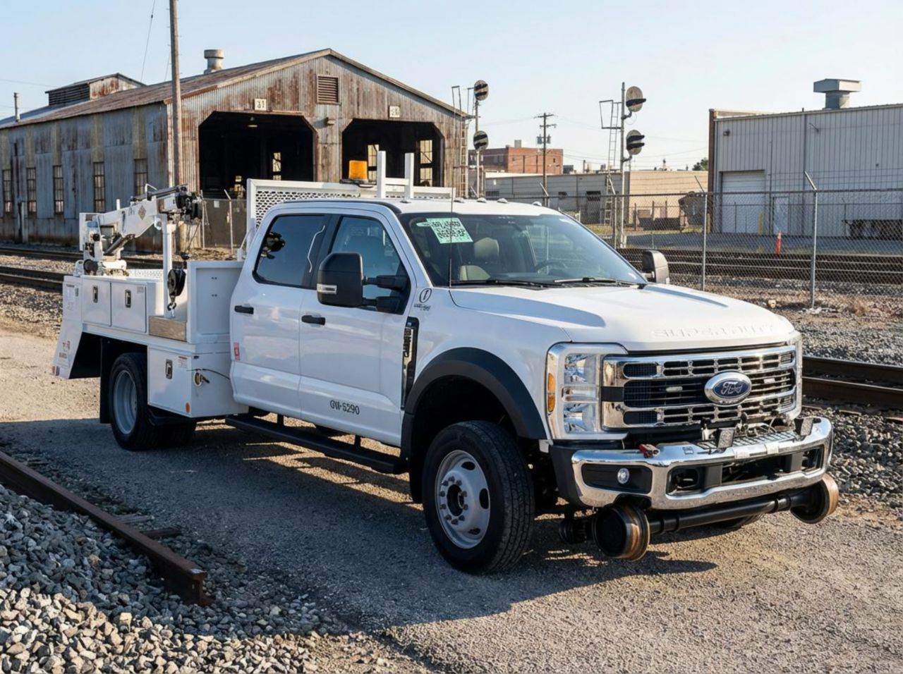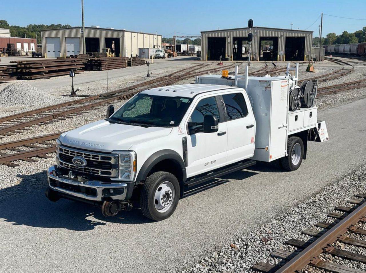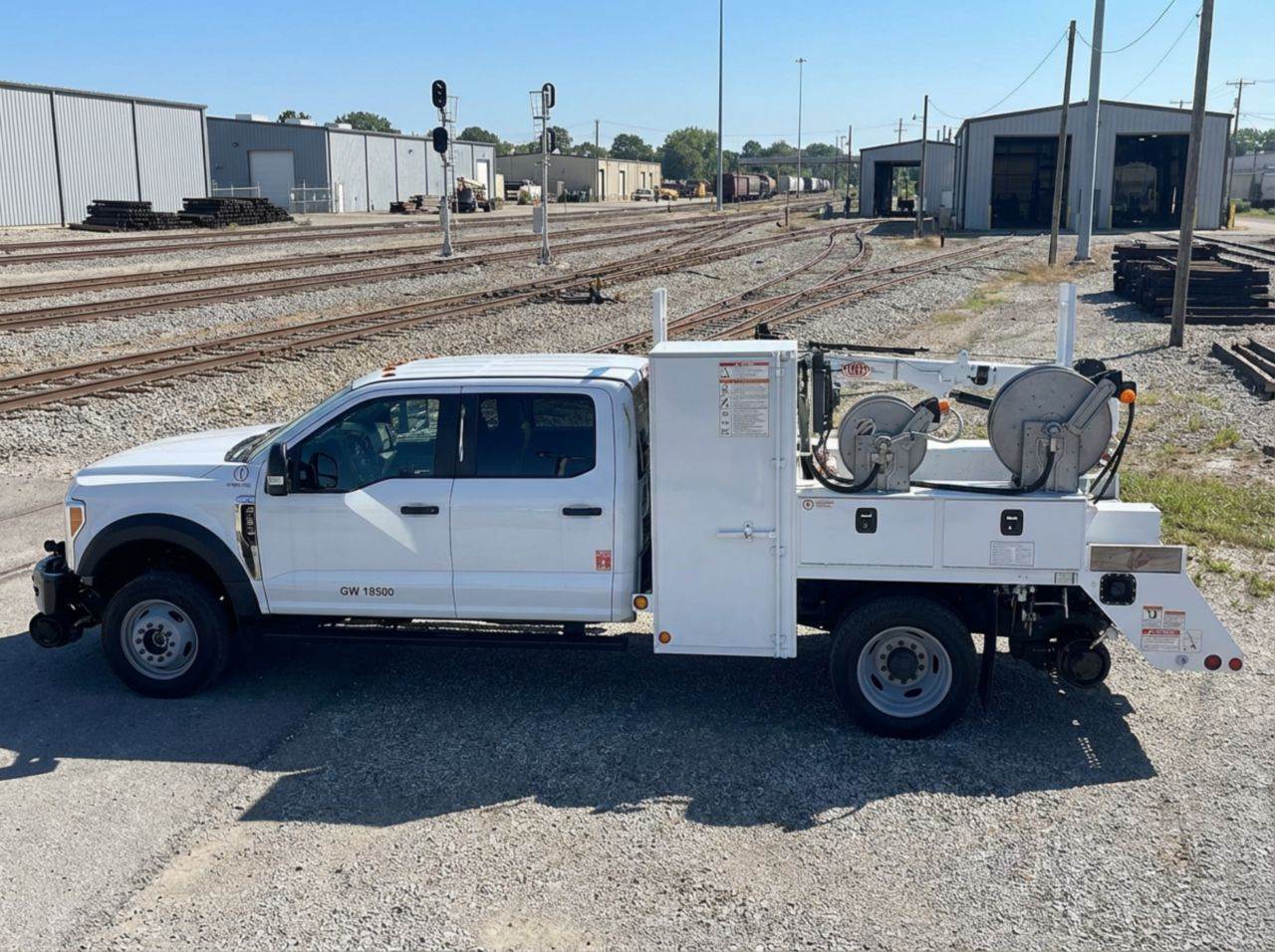 This Ford F550 4x4 hi-rail section truck is built for reliable rail and roadway maintenance with a 19,000 lb GVWR, 7,000 lb front axle, and 14,706 lb rear axle capacity, providing a stable platform for section and inspection operations. Power comes from a 7.3L gas engine rated at 335 hp, paired with a 10-speed automatic transmission for smooth acceleration and consistent power delivery in mixed-duty environments. The crew cab Class 5 chassis features a 60-inch cab-to-axle, 179-inch wheelbase, hydraulic brakes, and spring rear suspension for predictable handling on-road and on-rail. Equipped with an IMT 1015 hi-rail system and a Knapheide 422 service body, this unit is designed for rail maintenance, inspection, signal work, and utility support, offering organized storage and dependable 4x4 traction for varied jobsite conditions.
