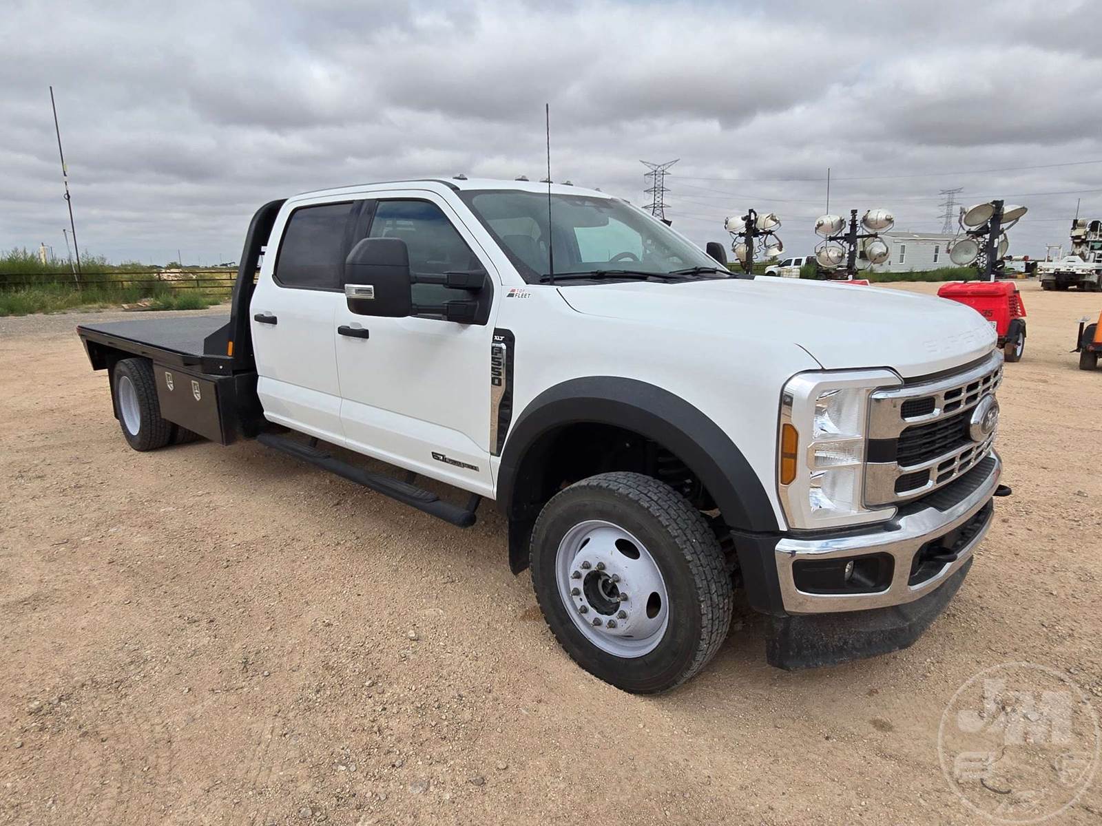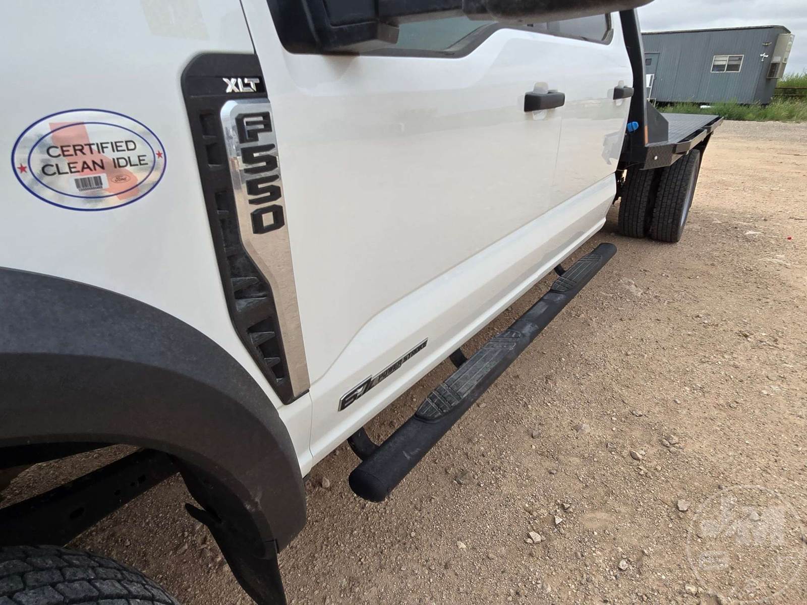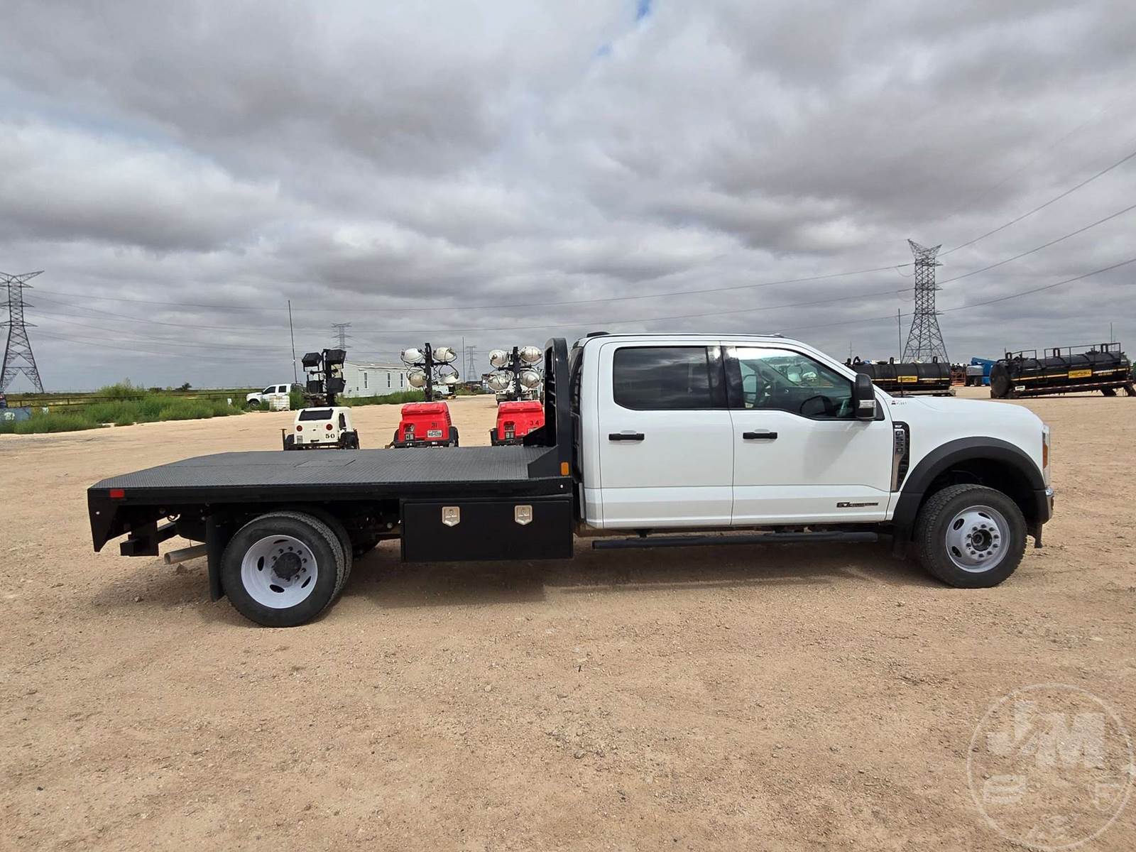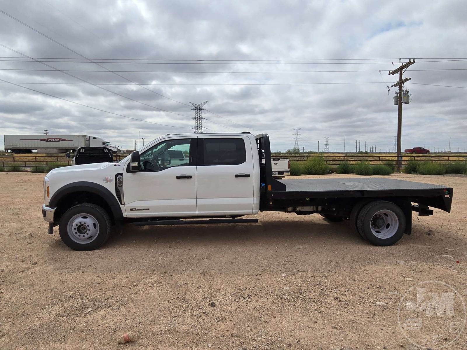 CREW CAB 4X4 FLATBED TRUCK, POWERSTROKE 6.7 L DIESEL, ENGINE BRAKE, AUTOMATIC, SPRING SUSPENSION, HEADACHE RACK, CRUISE CONTROL, REAR HITCH, 203 IN. WB, 11 FT STEEL BED, USB/C CHARGING PORTS, 12V CHARGING PORT, AC 400W MAX CHARGING PORT, TOUCH SCREEN, OFF-ROAD STATUS DISPLAY, ADJUSTABLE FOOTPEDALS, LANE KEEPING SYSTEM, FLIP UP CENTER CONSOLE, RUNNING BOARDS, STEEL DISC WHEELS, 225/70R19.5 TIRES, HOUR METER READS: 2329, ODOMETER READS: 67409, 19500 LB GVW