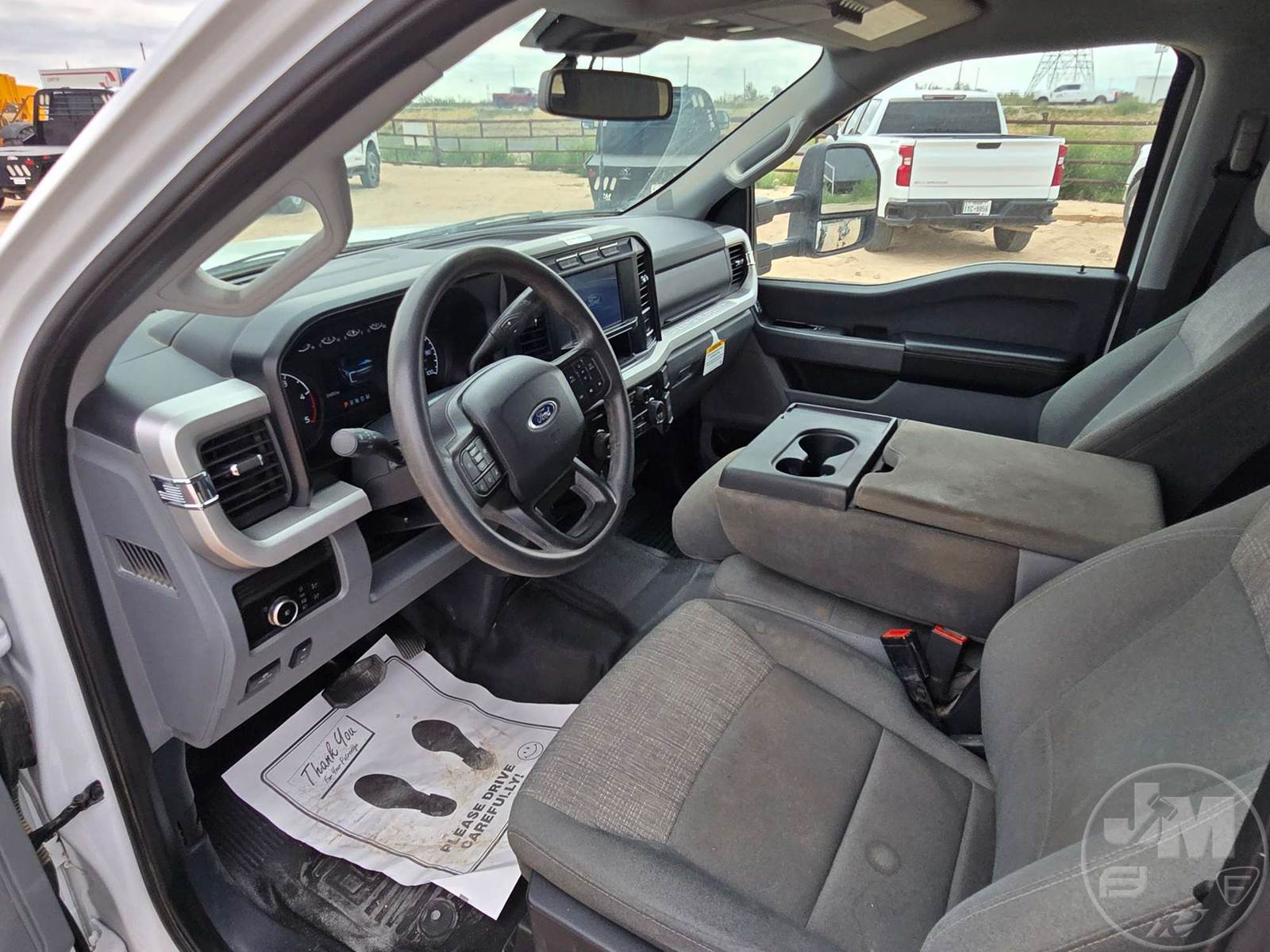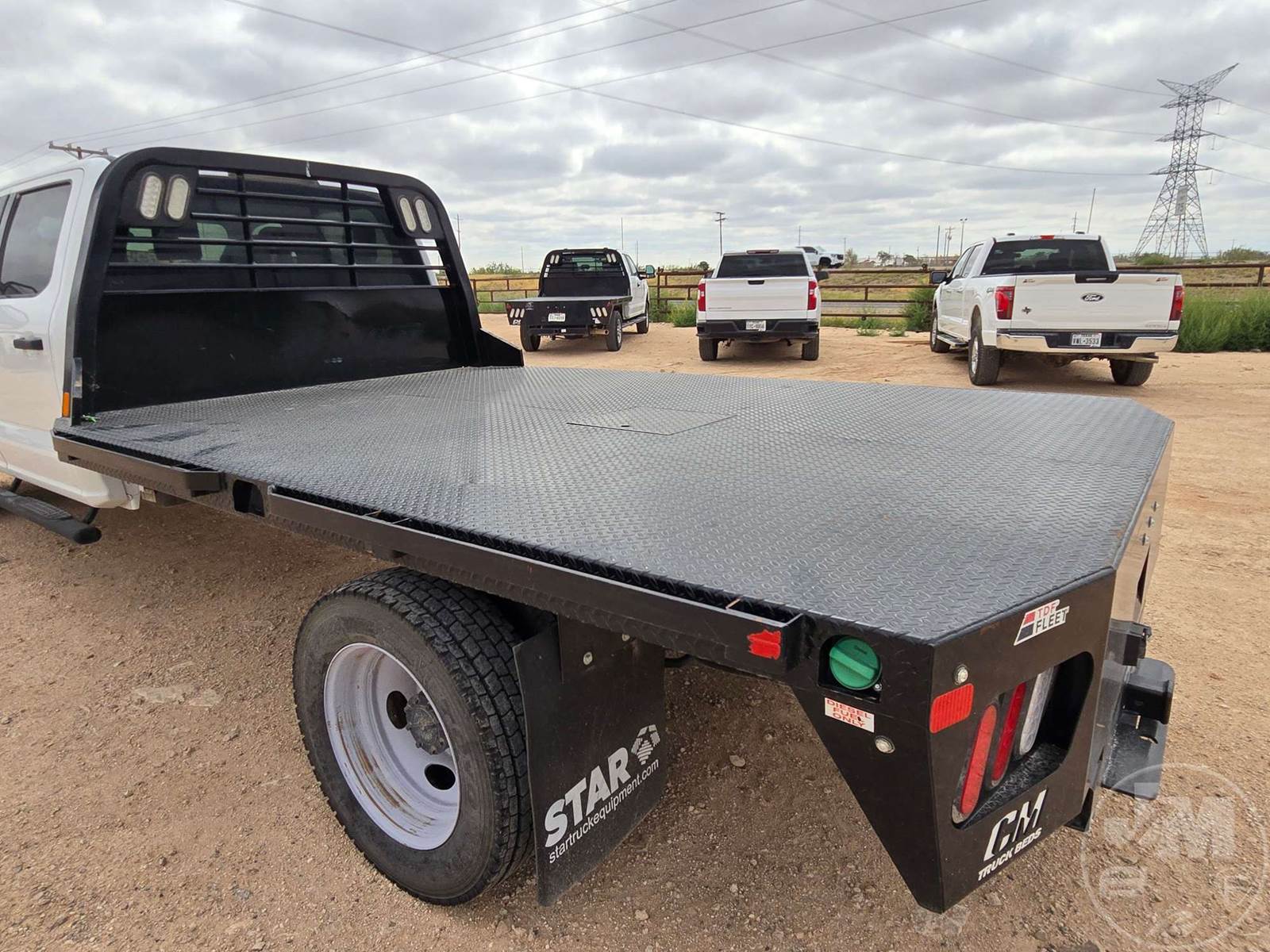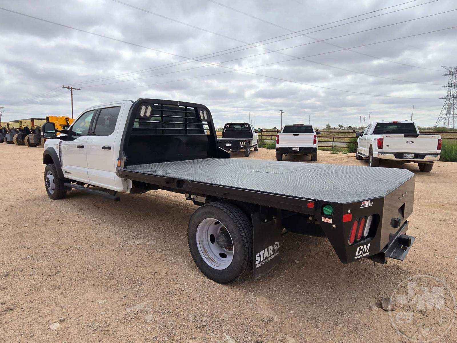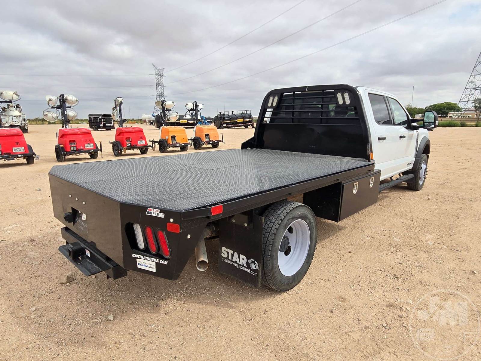 CREW CAB 4X4 FLATBED TRUCK, POWERSTROKE 6.7 L DIESEL, ENGINE BRAKE, AUTOMATIC, SPRING SUSPENSION, HEADACHE RACK, CRUISE CONTROL, REAR HITCH, 203 IN. WB, 11 FT STEEL BED, USB/C CHARGING PORTS, 12V CHARGING PORT, AC 400W MAX CHARGING PORT, TOUCH SCREEN, OFF-ROAD STATUS DISPLAY, ADJUSTABLE FOOTPEDALS, LANE KEEPING SYSTEM, FLIP UP CENTER CONSOLE, RUNNING BOARDS, STEEL DISC WHEELS, 225/70R19.5 TIRES, HOUR METER READS: 2329, ODOMETER READS: 67409, 19500 LB GVW