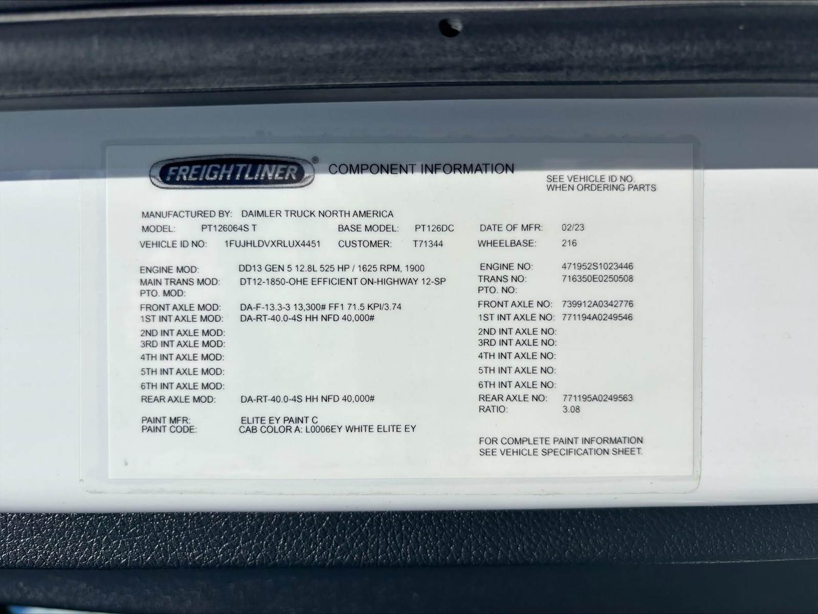 2026 Freightliner CA116 Day Cab, DD13 450HP, DT12 Automated Manual, PTO Capable, 182" Wheelbase, 12,500 Front Axle, 40,000 Rear Axle,...
