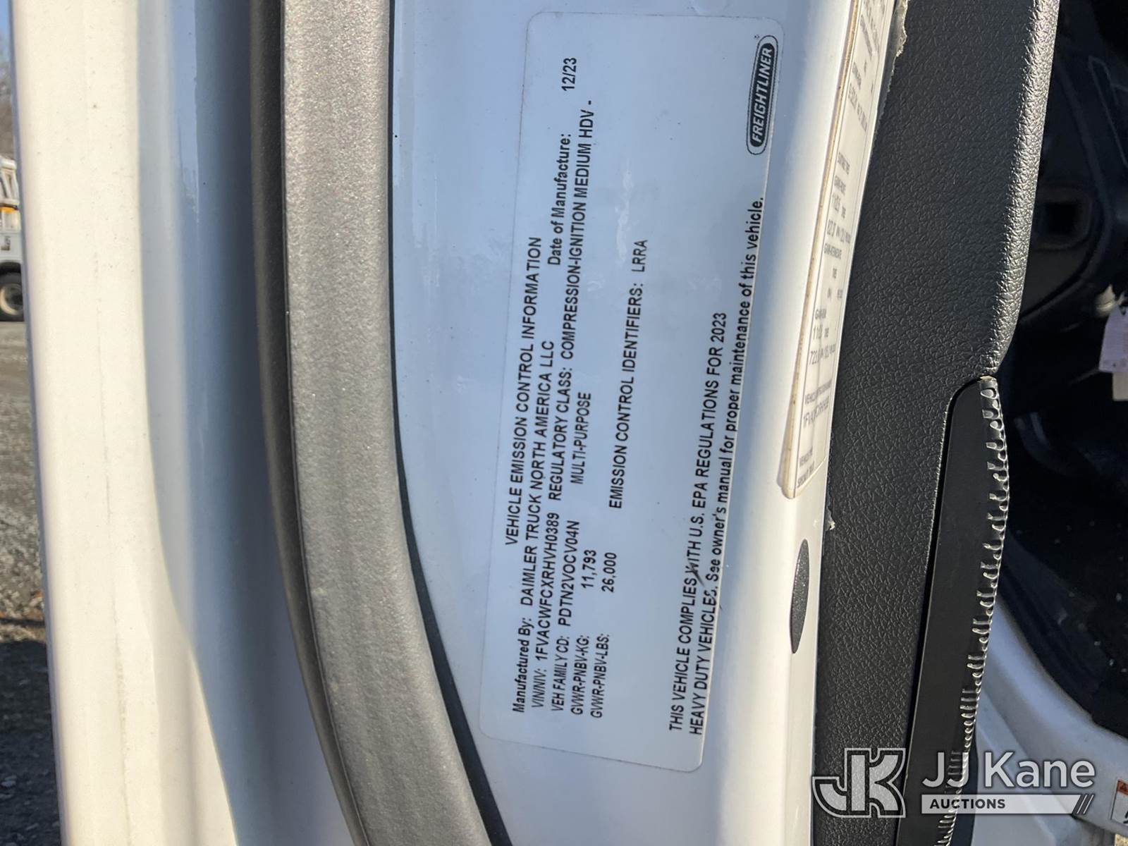 2024 Freightliner M2 106 Cab & Chassis, Cummins 6.7L diesel, Auto, A/C, with 11ft flatbed , (11,542 miles) (WRECKED, Over 25% Damage, Runs On Jump Box, Does Not Move - Driveshaft Removed, Boom Removed) This is a Titled Item NOTE: This unit is being sold AS IS/WHERE IS via Timed Auction and is located in China Grove, NC. Inspection & preview days for this unit are the 2 business days prior to the first day of items closing for this auction, item is located at 820 E NC Hwy 152 China Grove, NC 28023 and hours of operations are 8a-4p. For pre-sale questions, please contact Office Staff @ (704) 674-1113. (Buyer is responsible for removal. Assistance by consignor or JJ Kane Auctions is not assured.)