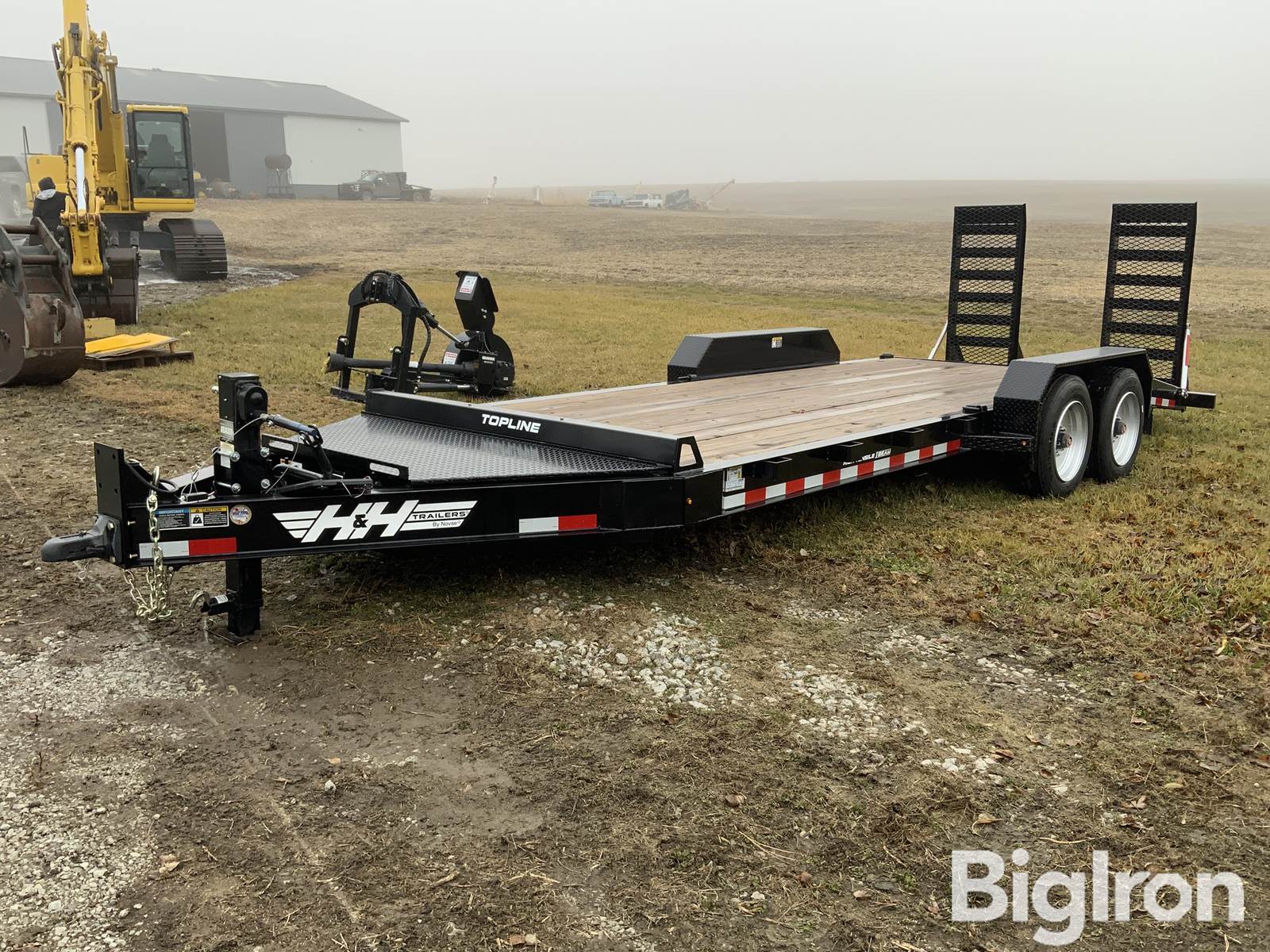 2024 H&H Topline 20' T/A Flatbed Equipment Trailer, Unused, H&H Model HBIT8220-BP-176, GVWR: 17,600 lbs, Curb Weight: 3,720 lbs, 215/75R17.5 Tire Size, 17.5 x 6.75 Rims, Deck Height: 22", Tandem Axle, 20' Long, 2" Pressure Treated Deck Material, (2) Fold-Up Spring-Assist Ramps: 24" W x 60" L, 82.25" Between Fenders, Overall Height: 35", Overall Transport Length: 26', Adjustable 4-Bolt Pintle Ring Coupler, Safety Chains, 12K 2-Speed Drop Leg Jack, (4) D-Rings, Banjo Tie-Downs, 5" Stake Pockets, Payload Capacity: 13,880 lbs, Full LED DOT Compliant Light Package, Round 7-Pin Electrical Connector, Includes POWOXI Solar Panel Battery Charger, LED Light Bar For Deck Illumination, *Open House/Equipment Inspection Day Being Held Monday, March 16th 10:00am-2:00pm @ 72568 634 Ave, Auburn, NE, 68305 (5 miles west & 3.5 miles south of Auburn, NE), VIN: 5JWUP2022RN593364