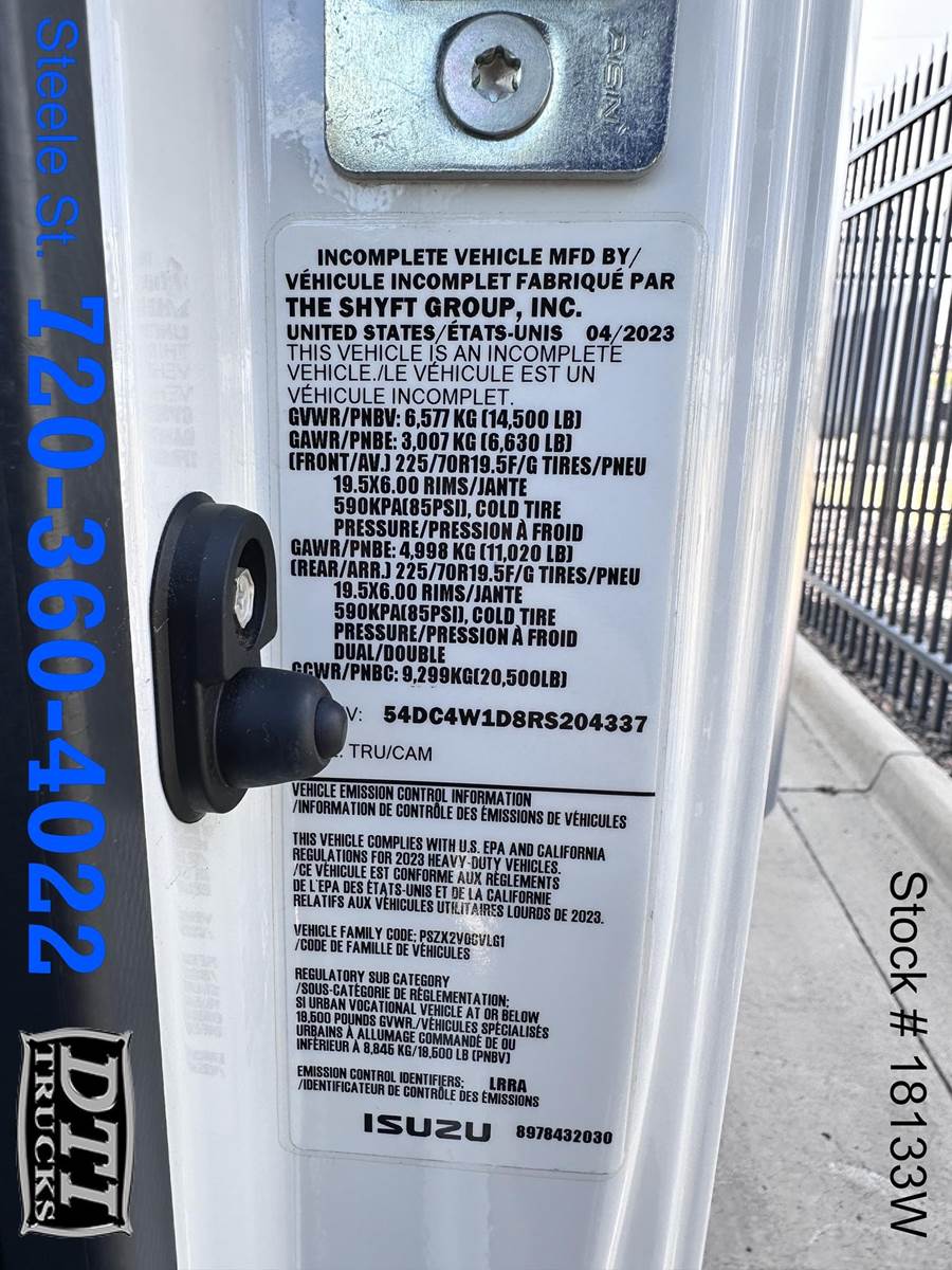 2024 Isuzu NPR-HD 16' Box Truck, 6.6L Gas V8 Engine, 350 HP, 6 Speed Automatic Transmission, 7,817 Miles, 14,500GVWR (No CDL Required), 6,630lb Front Axle, 11,020lb Rear Axle, 122" Wheelbase, 152" Cab to Axle, Spring Suspension, 225/70R19.5 Tires, Steel Wheels, 38 Gallon Fuel Tank, Hydraulic Brakes, 16' Long x 96" Wide x 97" Tall Box, Palfinger 3,300lb Liftgate, 47" Long x 80" Wide Liftgate Platform, 90" Tall Door Opening, A/C, Tilt / Telescope Steering Wheel, Cruise Control, AM / FM Radio, Bluetooth, Power Windows, Manual Mirrors, Power Locks, Cloth Seating for 3. This Box Truck is Available at DTI Trucks 8080 Steele St Denver, CO 80229. Call our Truck Sales Team at (for More Information. WE HAVE FINANCING OPTIONS AVAIALBLE! We Pick Up Out of State Customers from the Airport! Stock #18133W